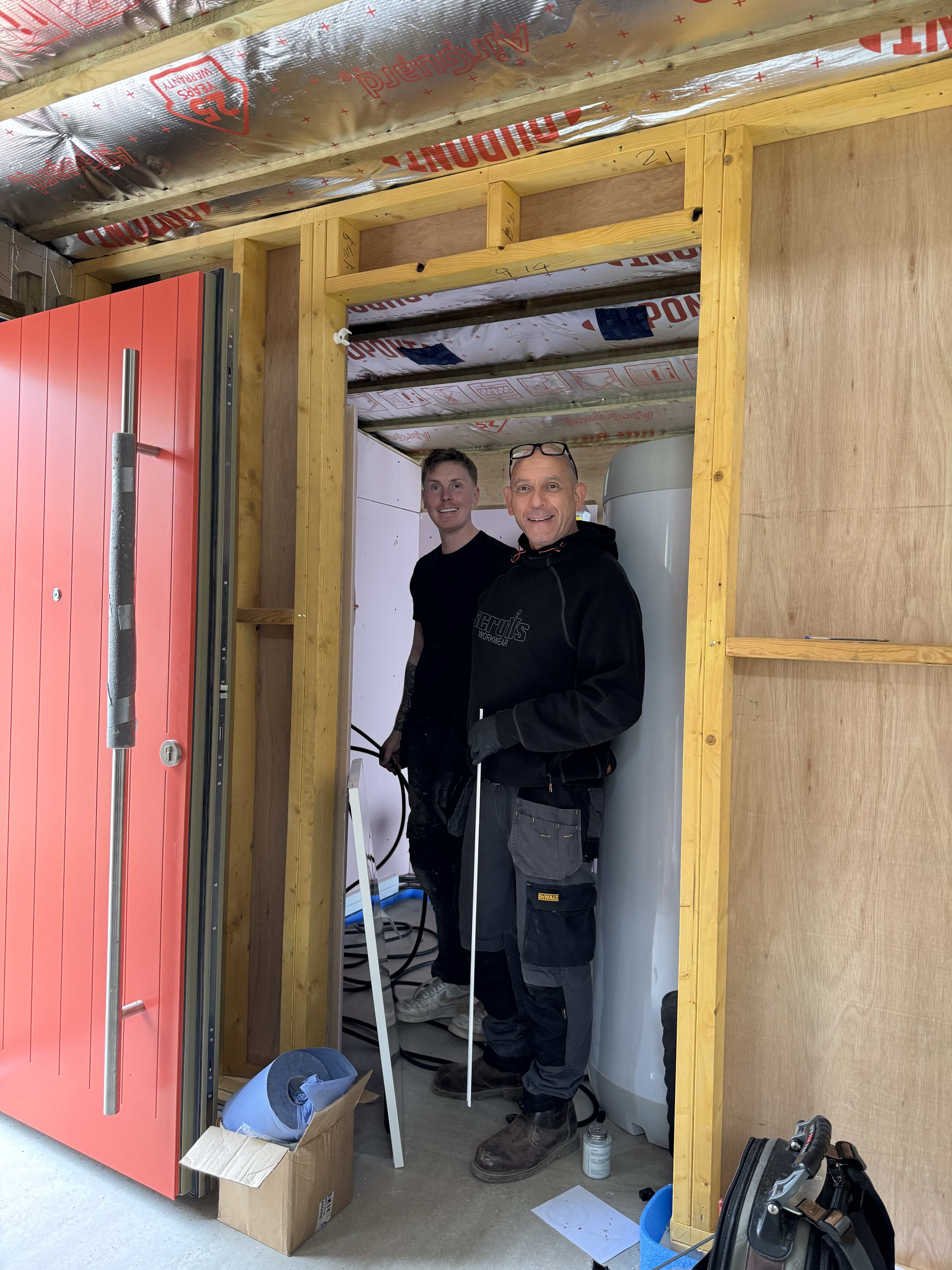 ... just in time for Paul and Shaun from Air2Heat who arrived on Monday to install and commission our Panasonic ASHP and cylinder - kit which also arrived on Monday. It's almost like it was planned!