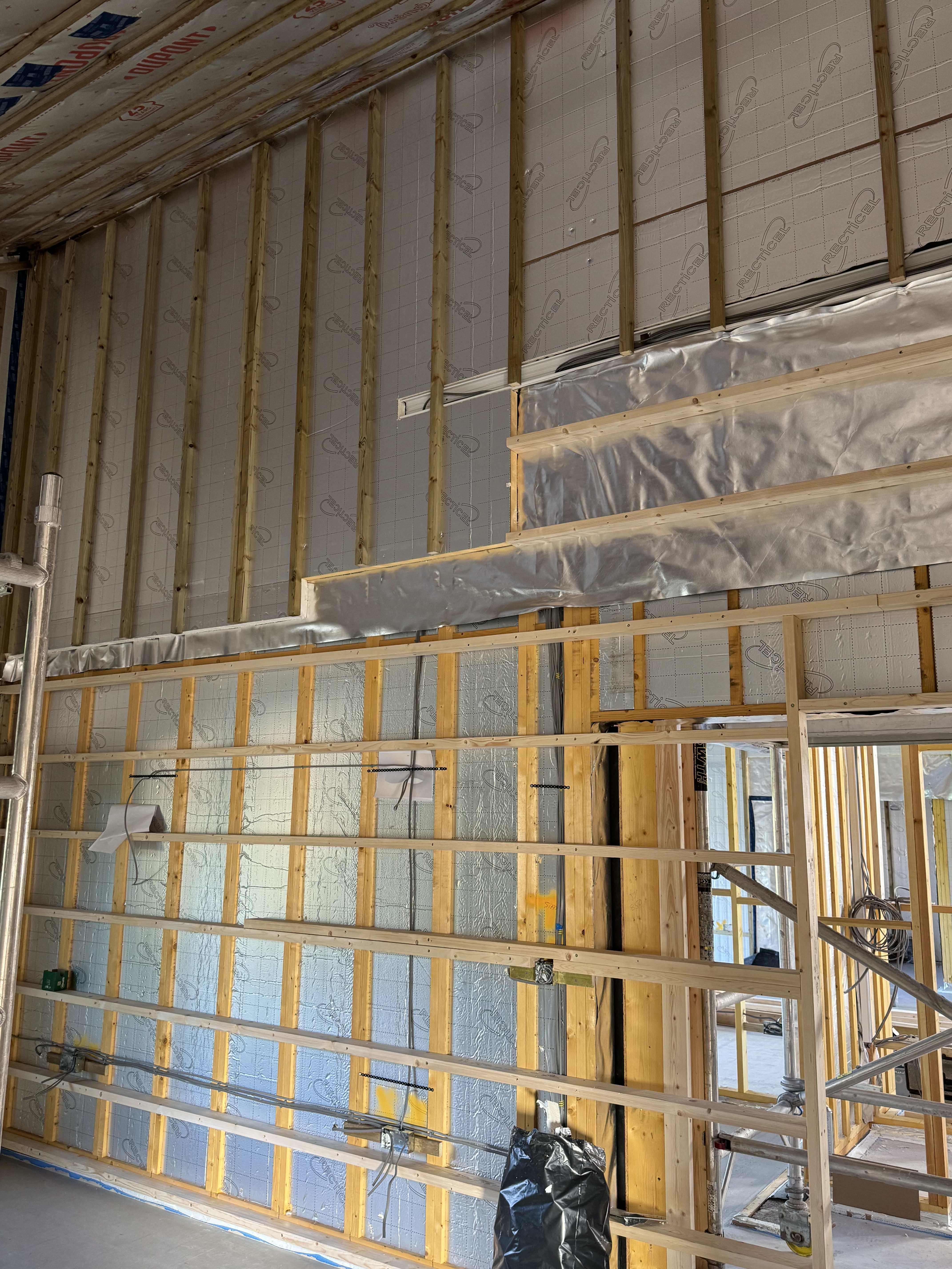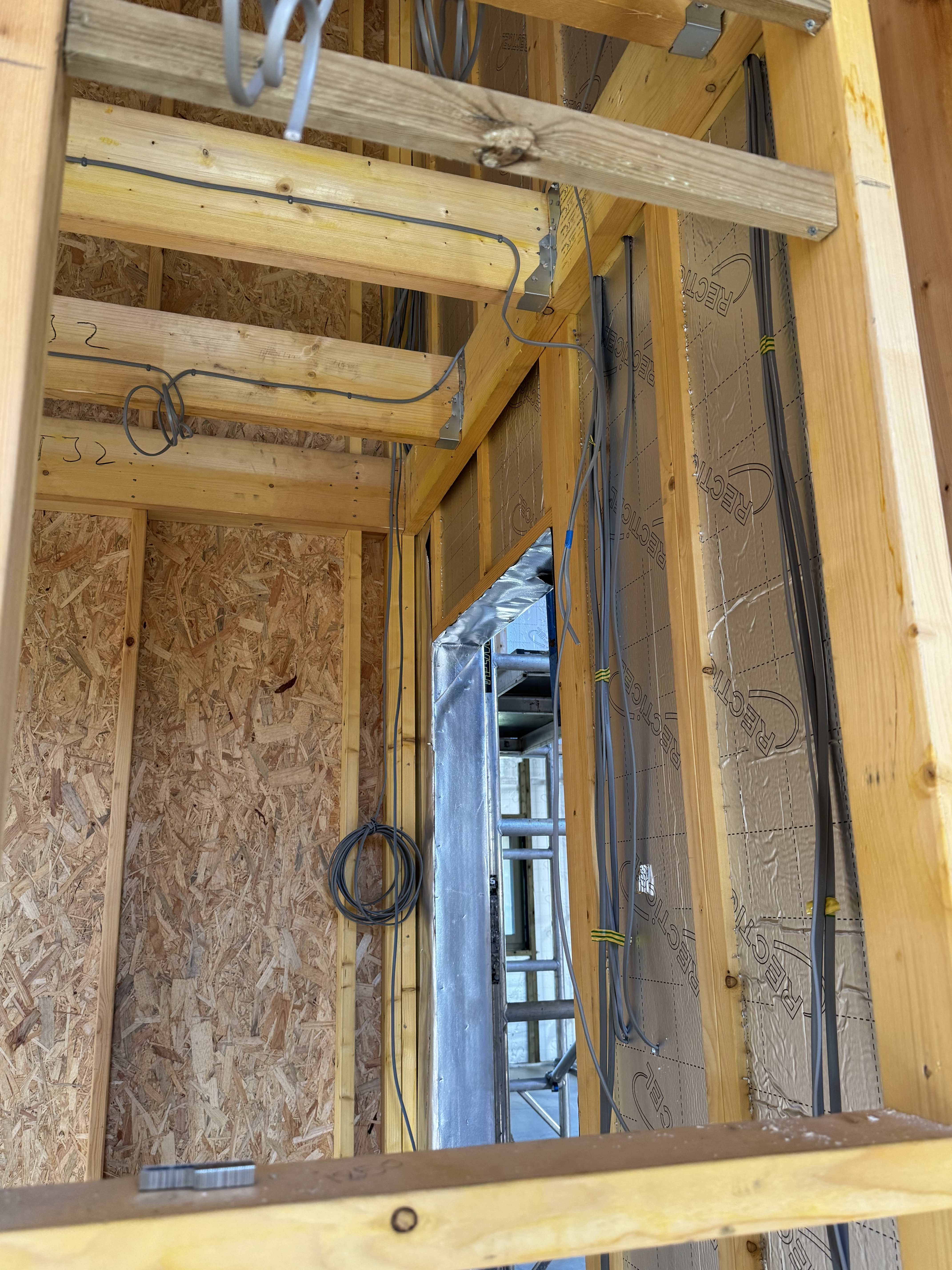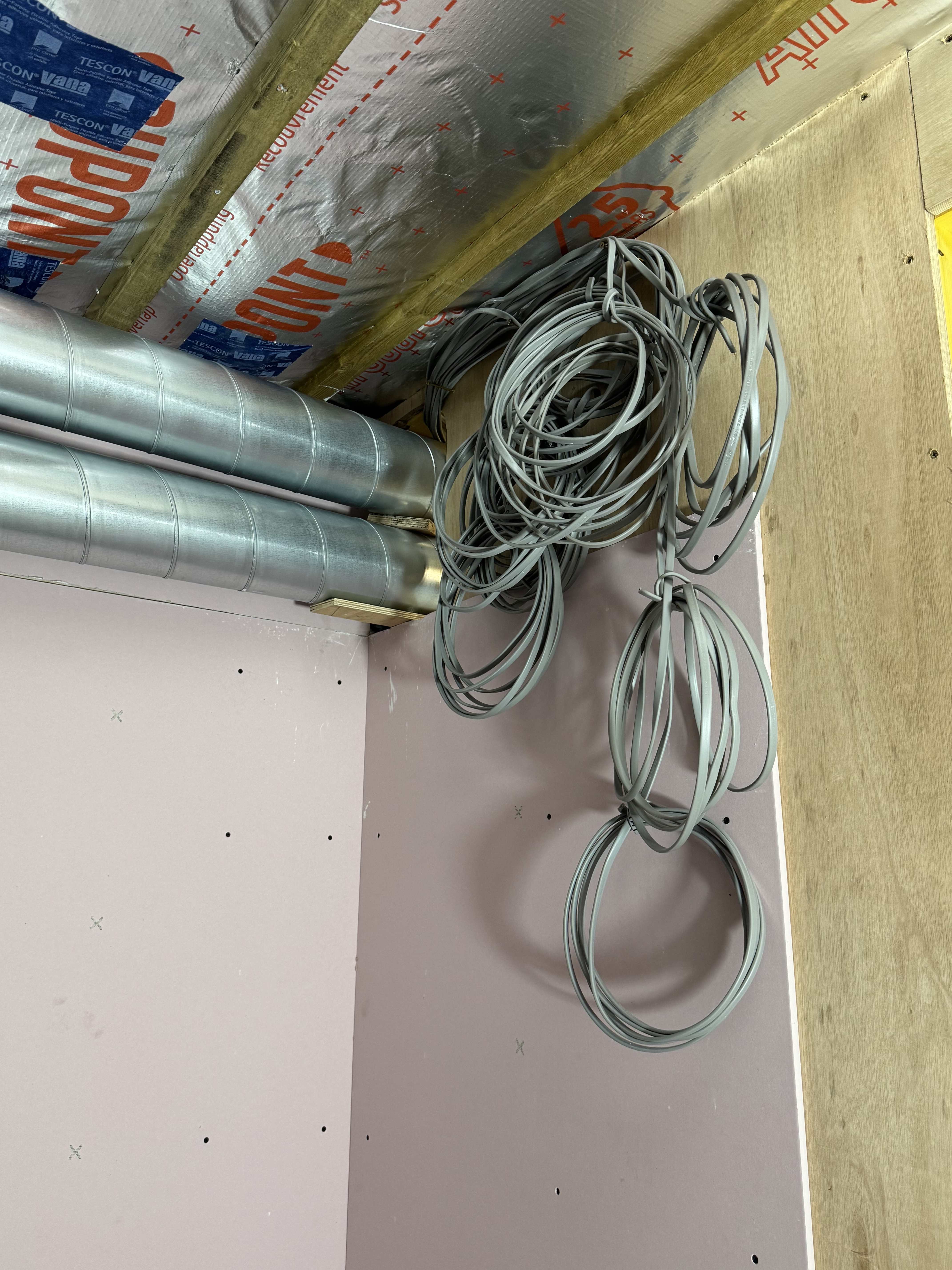 The plasterers are due to start two days later. Before then the first fix electrics should be completed, studwork should progress as will routing the internal MVHR ducts, largely through that studwork.