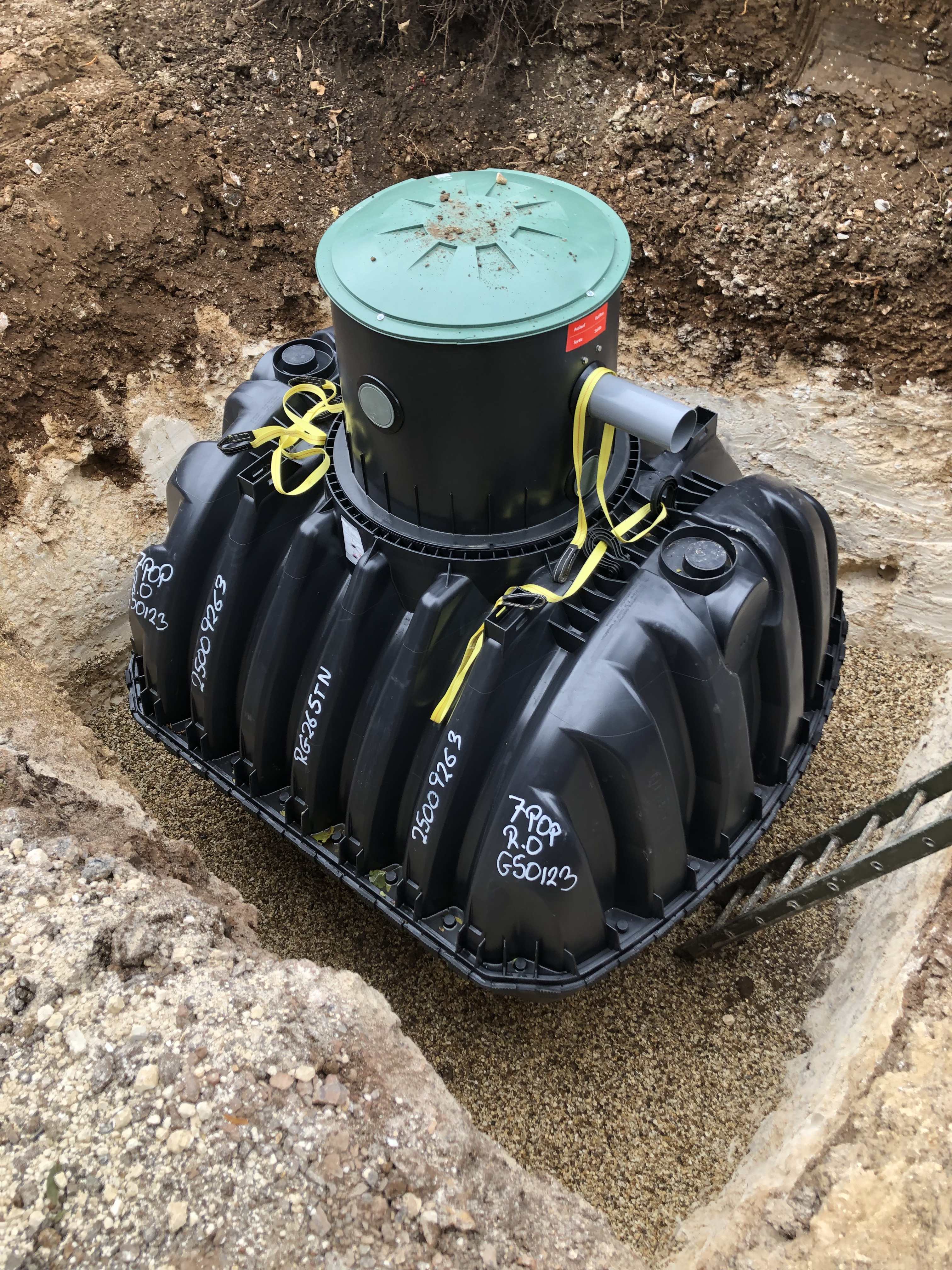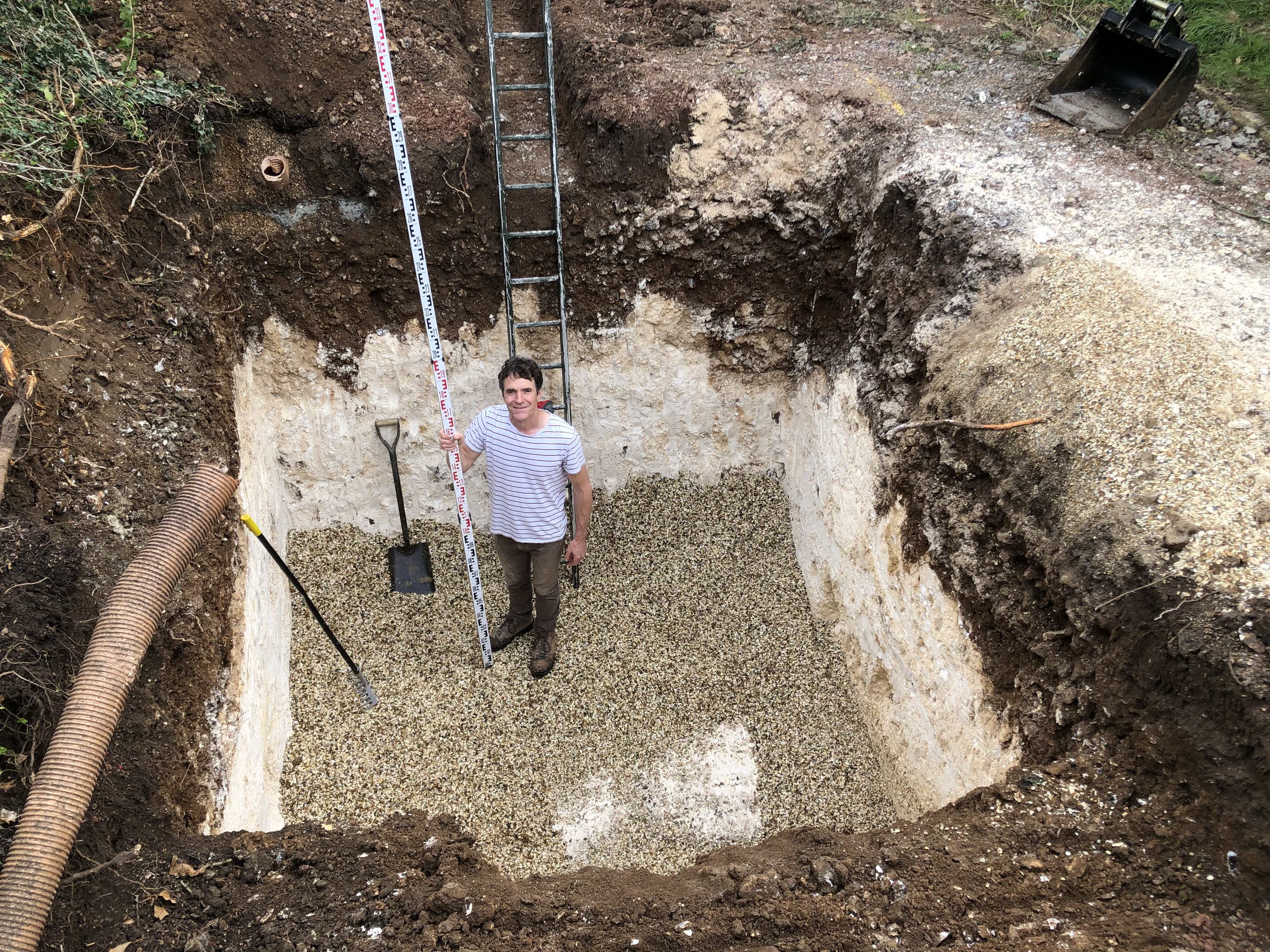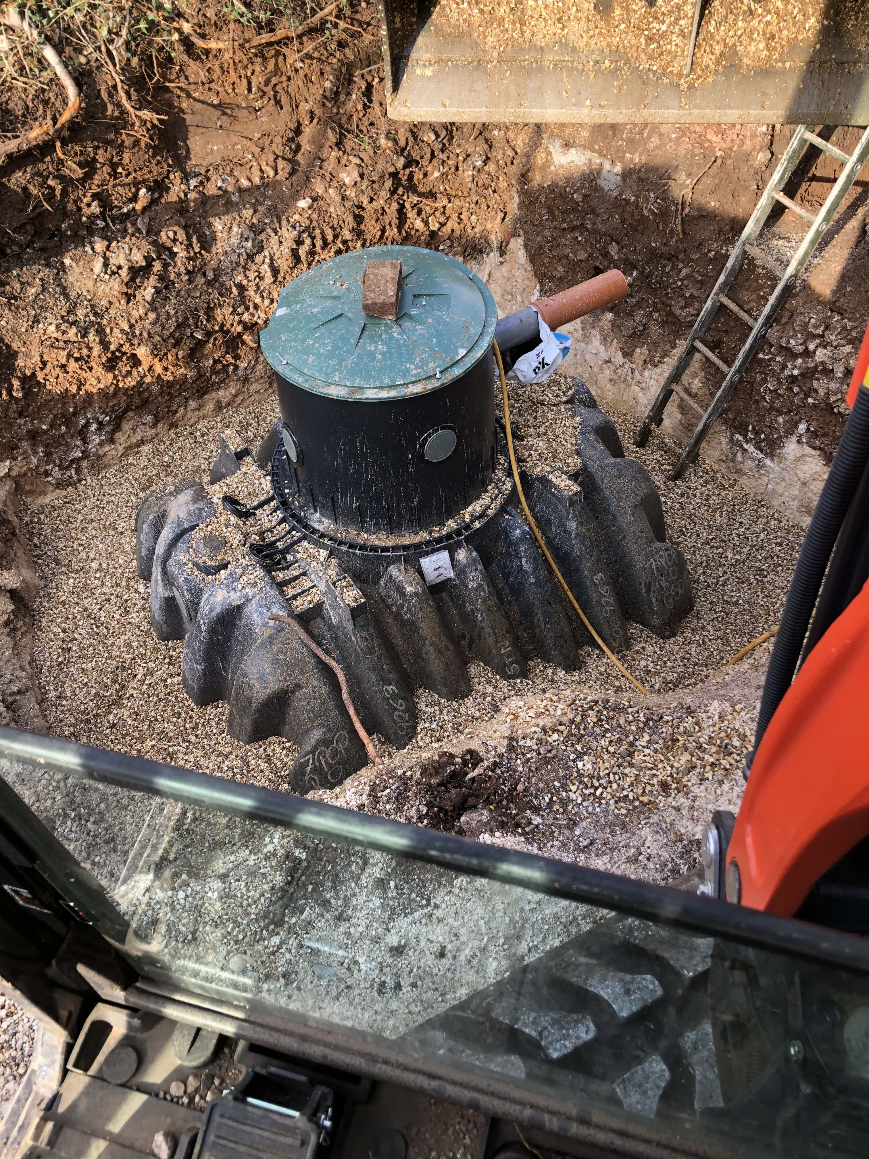 So the drainage field is now in and the tank went in today. It was a bloody deep hole! Used nearly 20 tons of 10mm shingle to backfill the tank.
