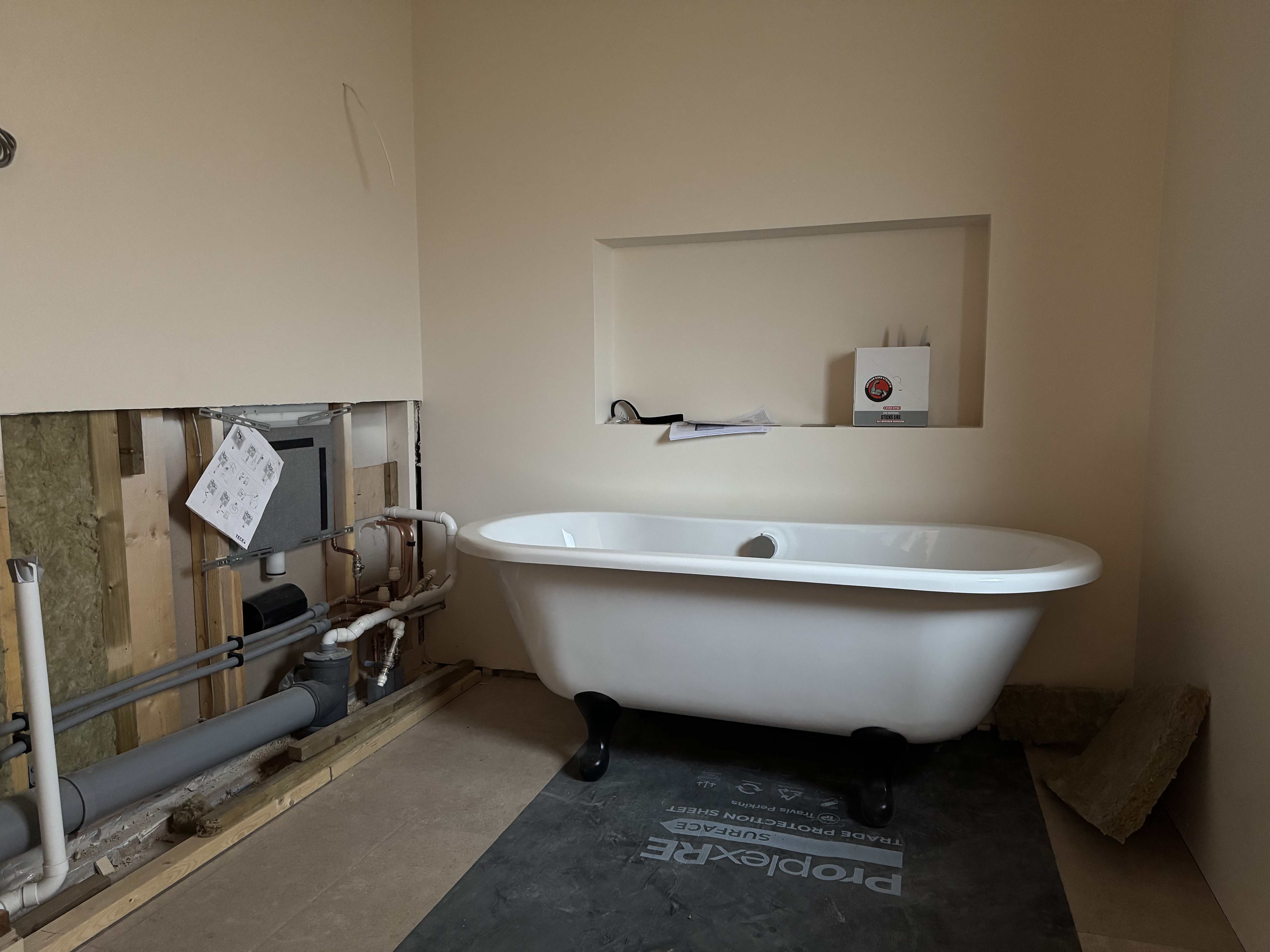 In the master ensuite we have now got some boxing-in to do which will hopefully double up as built-in storage, then Chris will be back in the New Year to fit toilets, wash basins, shower screens etc.