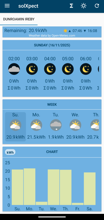 TL;DR Got ours installed last month. Obsessed with the details now. Energy Savings Trust PV calculator is excellent although we went for double the size. I think you are overestimating the number of panels that will fit. They are big and don't come in that many different sizes or shapes. Similarly crap solar PV forecast in my location, but it cut our usage by 50% in Oct-Nov. Ours is the SE roof only, 45 sq m in 22 panels giving 9.8kwh peak, house footprint is 75 sq m, generated 6.5kwh last month with a large battery. Info dump to follow. Scroll to pics. Estimated solar PV needs We started off with the Energy Savings Trust PV calculator, super helpful but it wouldn't do calculations for our size of system and limited our annual electric use to 6,000kwh when it is double that (yours will be on your bill). Solar PV depends on location - not just roof direction - west coast UK being the worst area (dark clouds and thick clouds)- put it in a calculator to find out, but it also depends far more on time of year. It can vary a lot between days - batteries will smooth this out - but what you will notice more is exporting excess to the grid most days in summer, and rarely being self-sufficient in winter (depending on your calcs). Several apps will do a daily solar PV estimate if you enter your longitude and latitude, expected system size, and the angle ("azimuth") which is usually degrees from South. Typical roof pitch is 35 degrees. PV Caculator and SolXpress are free ones. You can monitor the predication charts this winter, compared to average daily usage (from your bill). Heat pump cylinder Some of solar PV compatible and some aren't. I have no idea what this means since that's next year's job! Batteries are big They can go outside (under a shade canopy), in garages and I think probably in lofts. Might fit in a garage loft if it has a sloped ceiling. It CANNOT be fully boxed in because ventilation is needed but this can be at the top, sides, and underneath if wall hung. If you put it outside the garage you can hide it with planting on trellis or similar. We can't get them outdoors here due to limited space. Our house layout is extremely complicated with no garage, and internal thick stone walls. We have a 13.5kwh Givenergy All in One battery unit and it fits in a typical "alcove" - its at the side of our disused chimney breast where you might fit a bookcase and takes up almost the full depth and width of the alcove. It is about 1.2m high x 0.65 x 0.65 (I think), above it are 2 small string inverters (Solis ones about 0.30-0.35m deep) and 3 isolation switches plus the cabling between them so basically nearly up to ceiling (which is quite low) and about 0.20m off floor. It actually works well with something similarly sized in the other alcove. It is similar to a 250L heat pump cylinder but boxier, and has string inverters above it (they are not much bigger than A4 paper but shouldn't be right next to each other). You can probably get much smaller batteries but ours is a modular system we can easily add to. It does hum, the smaller string inverters are much quieter. It is a large capacity battery given the size of our panels, although your home is much bigger I think (assuming you have 2 floors) so you might want similar battery size. It is in the office/study and I plan to cover the front of it with (removable, painted) ply sheet with top and underneath gaps for ventilation - luckily we have a MVHR supply valve right above it that gives continuous ventilation moving heat away from it. I wouldn't be able to tolerate working with the hum but it is fine for my other half. LAN cables needed for us (dodgy wifi) go up to ceiling and under upstairs hallway down to router. I think I remember that the battery should be near the string inverters and panels, ours is directly below the middle of the panels. Further away works but you can lose some power I think. You can fit to outside of house under opaque canopy, or in an unheated porch (it will warm the porch a little). They should have shutdown safety features, fire risk didn't come up when were seeing installers but they can get hot especially boxed in. Ours briefly got to 31C in October indoors which is fine (we are in a stone house that doesn't overheat). I wouldn't put one in direct sunlight though. And don't put it in the lounge or a bedroom lol because of the bright LEDs and hum. Wide hallway would be fine, under the stairs if not enclosed by a cupboard. Kitchen or utility would be ok but I would raise it a bit off the floor in case of flood from washing machine. You don't have to have batteries but if you do then you will be able to get the bonus export prices during high demand, and it will pay for itself quicker, and in winter yoy can charge batteries from the grid at night for us in peak hours on gloomy days eg 5-7pm when it is dark. Calculations example 43sq m of panels (22 panels), all SE facing, 9.79kwh peak, 13.5kwh storage, West of UK (poorer solar irridiance), no shade, typical usage 13kwh/day. Installed last month (mid Oct), first electric bill since showed 50% less electricity usage. Our typical electric bill is £120-150/month, in summer we except export amount may cover the £13 standing charge and zero usage. 13kwh/month going up to 15kwh in spring, autumn and winter once we get a ASHP and EV. For us at the moment (mid Nov which is the 3rd worst solar month, we are in the west coast, by hills), today Sun is forecast 18.6kwh, Mon 21.5kwh, Tue 3.8kwh but last 2 days were less (storm and power cuts). Our usage is 13kwh/day (no heat pump yet but an electric immersion heater runs the hot water, induction hobs and electric oven). Our batteries are 13.5kwh so these few sunny days this week will be self-sufficient and charge our pretty flat batteries enough for an extra day (75 sq m footprint, 9.8kwh system only on the SE roof so not ideal setup. BTW we have A LOT of battery given the number of panels, and the fact we only use 13kwh/day. Exac