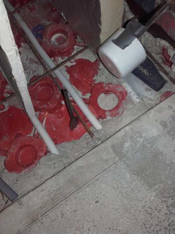 Better than that, but no photos. Drilling a 16mm hole through a thick stone wall for a cable. When it broke through on the inside, I cut back a bit of the plasterboard, to find the drill bit had emerged through the wall between two 22mm copper pipes that nobody knew were there. An inch either way and it would have been a wet problem to fix. -