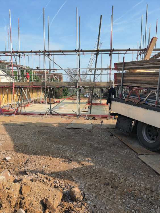 It was one year ago that we started our house build, and we moved in 4.5 months later on July 3rd. Well, that's the headline to catch attention, but there needs to be some qualification. A year ago we started building above ground. Before that, we had 3 months of asbestos removal, demolition, site clearance, excavation, concrete slab, drains and scaffold. But still, 19 weeks to build everything above ground is good. Our method: MBC completed the timber frame in 8 working days - that was a great head start. We had a fixed price contract with a general builder for all the external finishes. This meant we could leave him to manage that whilst we concentrated on the interior. We had plumbing, electrical and carpentry trades working on site in parallel. The house was big enough to have separate working areas. We (the client) were always present to create the culture of collaboration and courtesy. Me and the Mrs worked full time on the build without employment to distract us. One of us would be on site before 8am to open up whilst the other was doing desk work: chasing quotes / delivery / documentation etc. We had very few times when the site was unsupervised by one or other of us. We were disciplined in making decisions in the right order and not changing our minds. We lived a 5 min cycle away in a rented house. Cycling is ideal because you don't take up parking space on site, and you can come and go without asking trade vans to move. Our builder saw the advantage and started cycling too. We had Travis Perkins, Screwfix and the electrical wholesaler all within a 10 minute drive. I could collect ad hoc materials before 8am with an estate car + roof rack so the trades weren't waiting for materials. Our builders merchants is a favoured supplier for kitchens / bathrooms etc based 100 miles away. We worked closely with them to keep their supply of materials ahead of the trades. I did three months of carpentry assisting the proper carpenter. If I wasn't supervising deliveries, doing a site induction for new workers, cleaning up, moving materials then I was doing carpentry. The site was always clean and tidy with waste promptly taken off site. The site was working 5 days a week, every week but typically not weekends. And when we moved in, there was another 6 weeks to completion and then the landscaping after that. Photographs attached from one year ago Build photos here: https://forum.buildhub.org.uk/topic/45435-project-finished-mbc-timber-frame-self-build-220m2-over-three-floors/#comment-634389