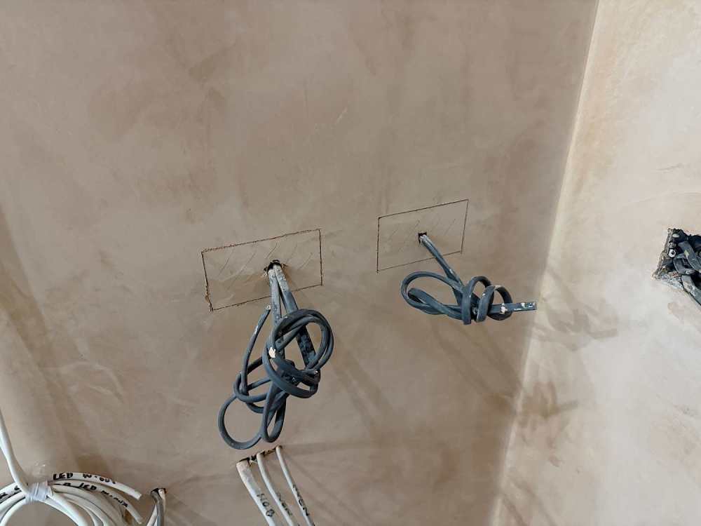 Yes, I hacked off as the plaster and mortar was damp, plus they didn't want to lose an ounce of space. You defo do not want voids and layers, so do this meticulously or not at all. -