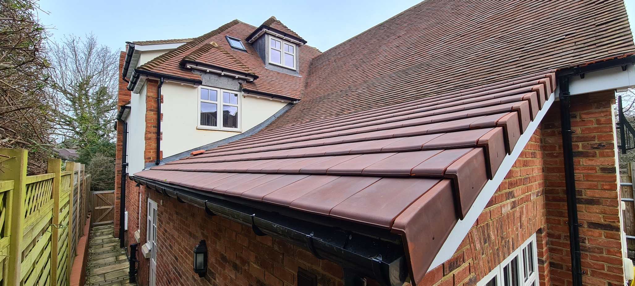 Hey all. Just wanted to say - over a year after the original post - I bit the bullet and had the roof replaced with Solum low-pitch tiles by a local roofer (in a perfect world I'd have tried it myself, but with all the recent rain, I wanted it done quickly, and I think they've done a pretty decent job) It seems to have done the trick as, even with the downpours we've had, the eaves seem bone dry. Thank you to everyone who offered an opinion and steered me in the right direction. Pain it had to be done but money well spent I guess! (PS. This means I have around 1,500 Heritage hand-made clay tiles left behind, that I'm going to put an add on for if anyone is interested! Just saying 😁)