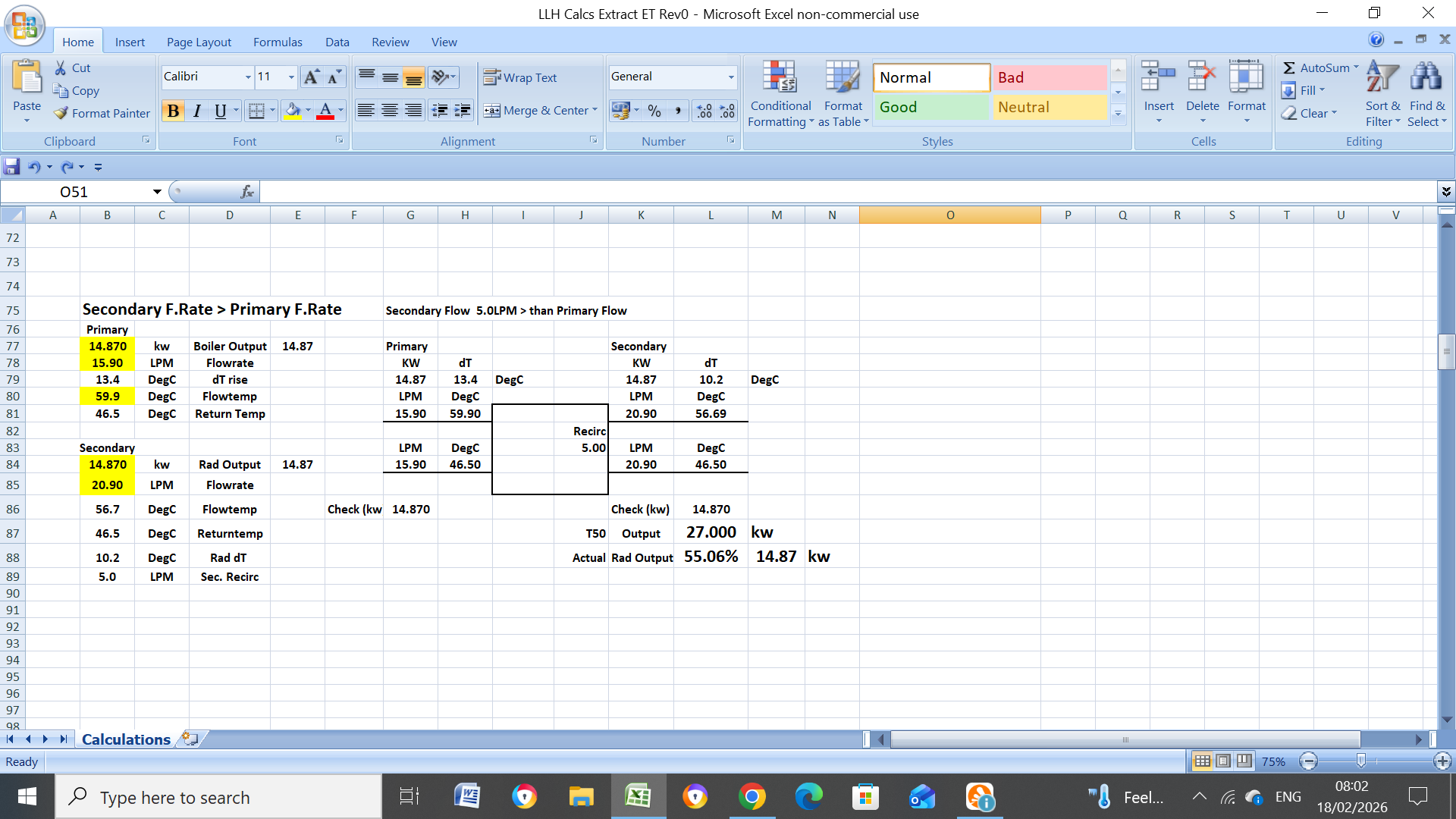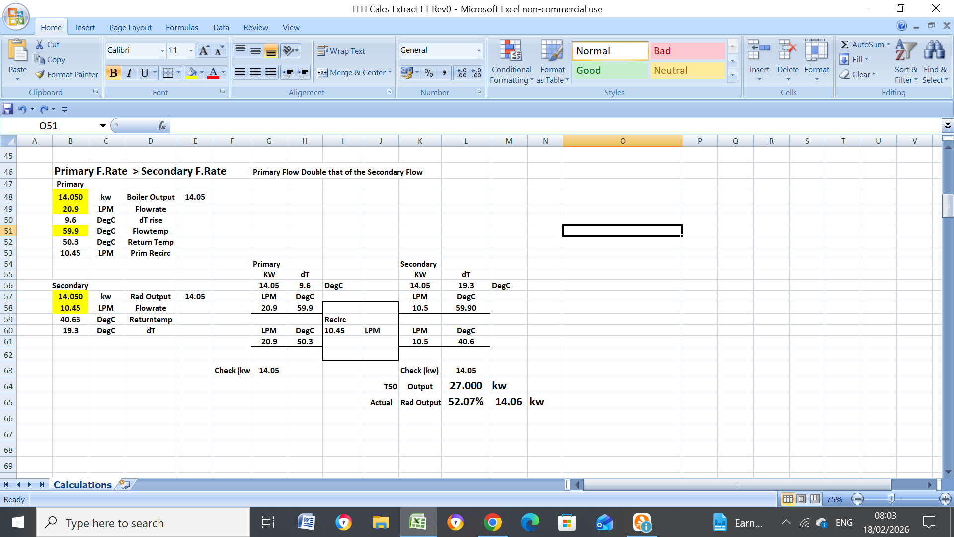 Here are the screenshots from your LLH with both balanced and unbalanced primary/secondary flowrates. -