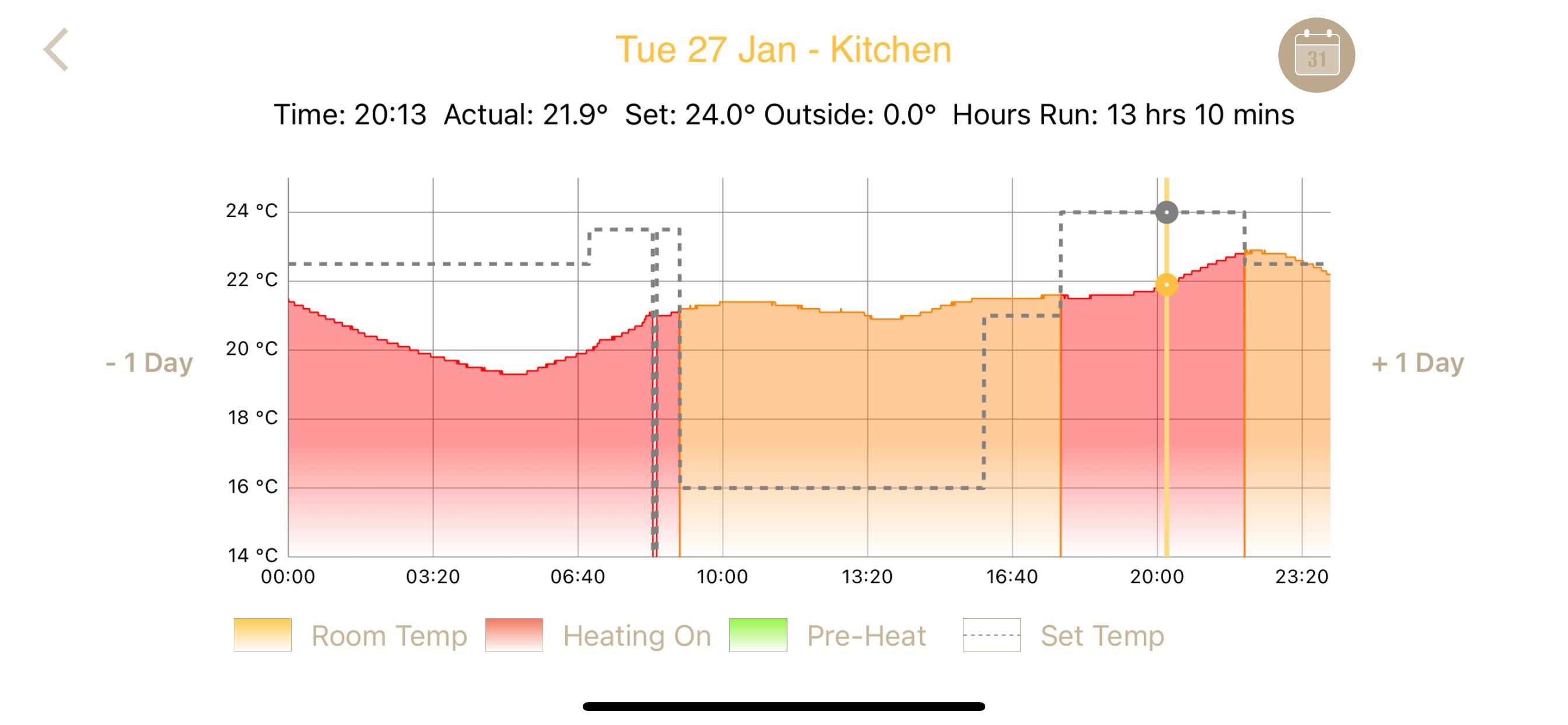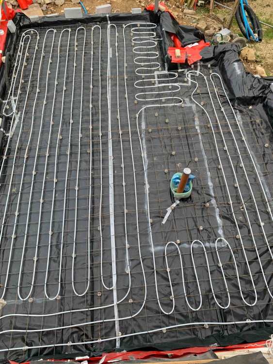 It is a new rear extension. Two pipe loops into a manifold and the heat source is a gas boiler with a mixing valve of course. Floor Area about 37 sqm, ceiling height 2.6m, 90mm PIR walls, 150 PIR in warm roof and under slab. As you can see pipes were not put under the kitchen island or kitchen unit wall area - so maybe 5 or 6sqm unpiped floor area. The heating has been operational for a couple of years since we had to ditch the original builders. I have had the concrete getting up to 26C with the current settings, but it has often had some protection mats or other coverings over chunks of it. Never really tried to optimise (or calibrate the heatmiser wireless thermostat) as it has been in various unfinished state but now plastered. I have omnie TorFlor2 heating in the suspended floor in the adjoining house. Just thinking if I had a probe then the heating could be arranged to turn off if the floor temperature went above 26C say.