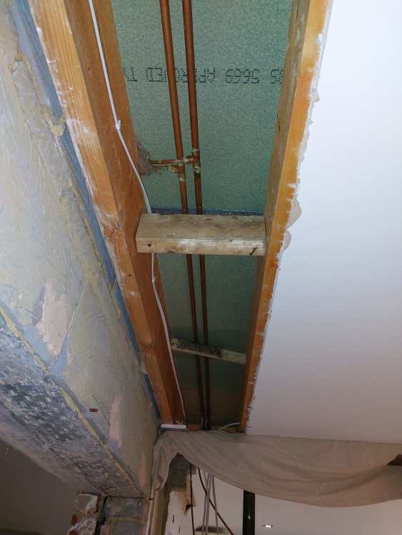 Looking to upgrade to 15mm. I thought the 8mm microbore circuit was fed by manifolds, but removing the downstairs ceiling reveals instead a 15mm secondary circuit feeding short 8mm microbore feeds to the upstairs rads, and long 8mm microbore runs dropping down to the ground floor rads (see photo). This should make things easier because I won't have to hunt around for the manifolds, I can just leave the upstairs rad circuit as it is, run two new 22mm pipes dropping down from the primary circuit upstairs, just after the secondary circuit pump in the airing cupboard, and then connect new 15mm runs from the two central 22mm drop downs to the downstairs rads. Any issues with that approach?