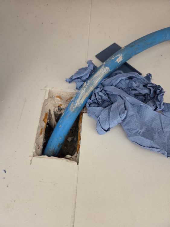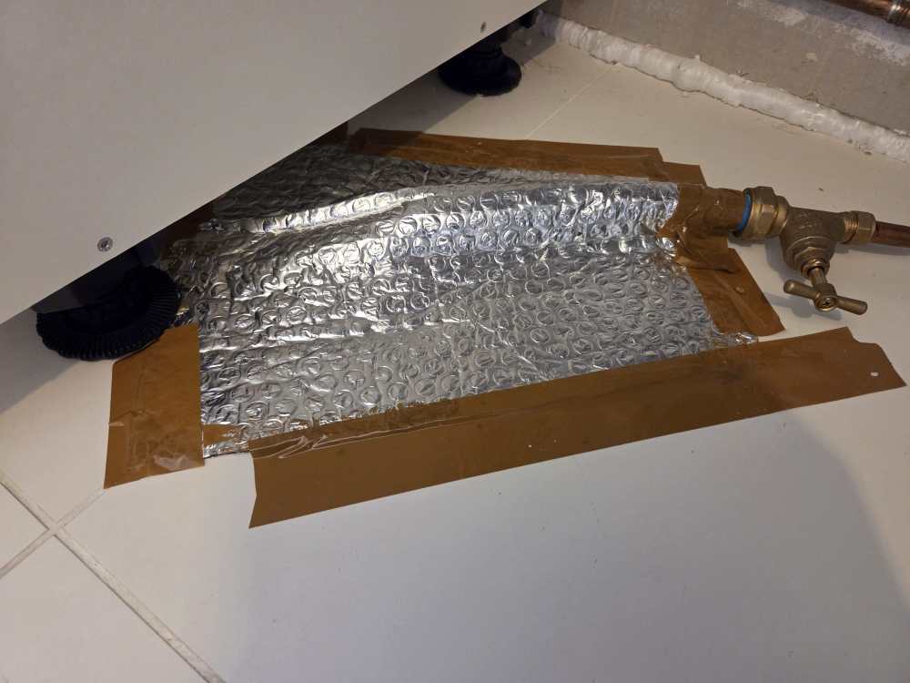 New floor and everything rerouted to allow for more space and different kitchen cabinet layout but I spotted that the mdpe pipe is wet (just below the paper towels). I did a few observations and after sticking lots of towels into the hole I think it's just condensation. What's the best way to prevent it? Covering with kitchen cabinets will probably reduce it but shall I put some close cell foam into the hole?