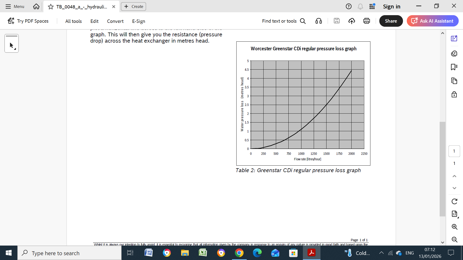 Below gives a idea of the loss through the boiler HEX, this might be the same as your boiler but try and get the proper one for your boiler. The pump curve above shows that the flowrate (curve A) is ~ 27.5LPM, 1650LPH at a head of 6M, the screenshot, below shows that the boiler HX pressure loss at this flowrate is 3.2M, this leaves a residual pump head of, 6-3.2, only 3.1M, so would require a LLH to allow a secondary pump to suppy enough head to give this flowrate. You could look at installing a booster pump instead of the LLH, far cheaper, even though frowned on by some because a perceived problem that the pumps wouldn't be matched leading to problems, I don't see a big problem with this as pumps like my own Wilo Yonos Pico have virtually infinite head setting (in 0.1M incremants) in CP (and PP) mode, to match the other pump. -