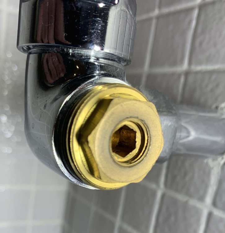 Towel Rad in the bathroom has not been getting hot or even warm since we started using the heating again. Have opened the bleed point and no air, so it isn't full of air. There are two shut off valves in the cupboard underneath but both are turned on. The rad has a 90Deg hand adjustable chrome twist valve on one end which I have opened fully. (see pic). I cannot see how to further access the internals of this valve e.g. to check for a stuck pin. There is no grub screw, and no ovious way to remove the twist cap ? The rad has a 90Deg fixed valve on the other end with a screw off cap, but after removing the cap it doesn't have a lockshoeld type piece to turn, so how do I open it please ? See Photos, and mucho thanks for any help.