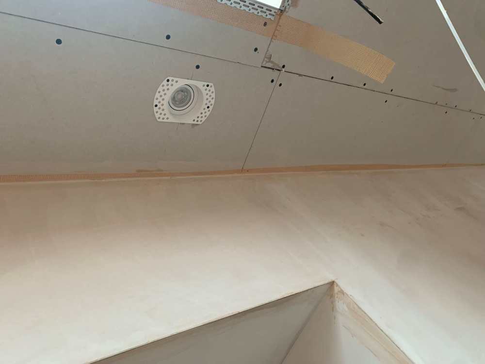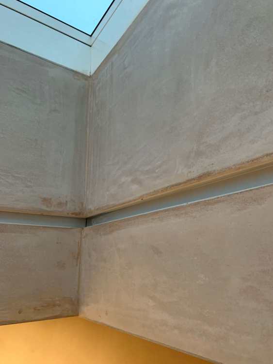 Looking at the rooflight makes me concerned regarding the edges adjacent to the LED profile etc... The plaster is grainy/gritty adjacent to the profile and in places near the top bead. The profile was filled with a foam strip to keep it clean during plastering at the plasterers request - but maybe not a good idea ?