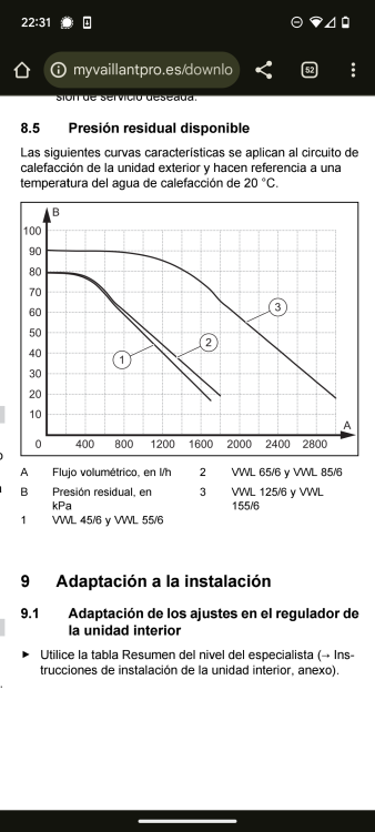 Thanks for the pointers on things to look at, I will get on that. Is 11kPa pressure drop in the primary pipework really nothing? It's 1m head, which could be 0.4m head if it were 32mm internal? Or maybe I'm missing something? (We're talking about only the 22m total primary here, not the rest of the circuit). After the diverter the pipework immediately splits into two circuits of 22mm copper each, which tee off into 15mm tails of about 6 radiators on each circuit. Neither had too bit a head loss as a result of this immediate split flow. All lock shields wide open. Can I please check the location of delta t, and what flow rate I need? Here is pump curve. Number 3, VWL155/6