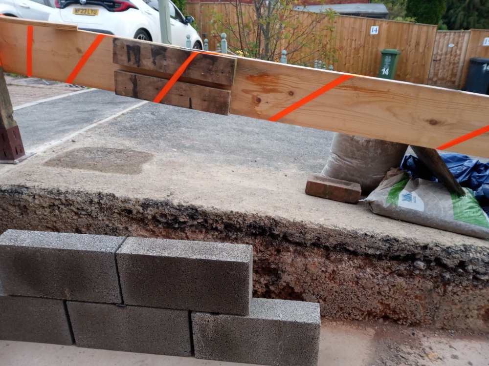 Thanks guys, am struggling with this one. Dreaming of a footing with 3mm tolerance π Here goes.... So I've taken more measurements and its one return (the rest is levelish) that slopes 20 or 15 mm (depending on whether you pick internal or external leaf) from the corner to the house over only 1.8m. On top of that it's all about 15mm below where is should be. All considered to bring it back on track over 2 courses the beds are going to be massive (30mm). Even using dolly blocks the first course is going to have to be about 30mm, dictated by the slope (granted its 30mm at worst tapering to about 10 Builder came around and couldn't really see the issue. Said they'd level out the slope with some mortar, let it stiffen before laying another bed of mortar over that. Starting to think best thing is to have the concrete breaker in to take 150mm of concrete out up to the corner. Hand mix and re-pour this length. π