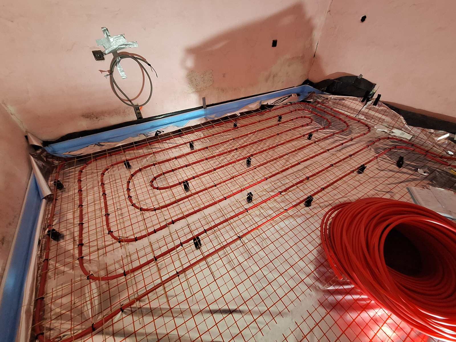 Hopefully the last time I bother you all with my floor. Next week I will be pouring the concrete floor in the house in renovating and looking for advice and tips. It's an old house with stone foundations, I dug out the old rubble that the old wood floor was sat on until I got to compacted ground and now have the following: -sand blinding -30mm eps -Dpm -Insulation (200mm EPS in some places and 100mm PIR in others) -underfloor heating foil -underfloor heating pipes stapled to insulation -4mm composite rebar 150x150 on 50mm chairs -30mm EPS insulation around edges and an expansion foam skirt I'll be getting the concrete delivered with a pump truck and hoses in one go. The main entrance is marked with the red arrow in the picture before, I'll start in the back room and work my way towards the entrance. It's approx 110m2 in total. My questions are: How do I make joints between the rooms taking into account there will be underfloor heating pipes going through doorways. Should the slabs be completely separate for each room to avoid cracking and allow expansion? What advice and tips do you have to successfully pour it all. It will be the finish floor (just tiles and laminate going on top) so I need it smooth and level. I guess I need long straight pieces of wood or something for screeding. Should I make one for each room the full width of the room for screeding? but what do you normally use to screed from (like rails) Then a bull float and keep working back through the house to the entrance. And then I believe after it starts to dry a little you trowel it up? How long after pouring is this normally? Any advice or tips would be great.