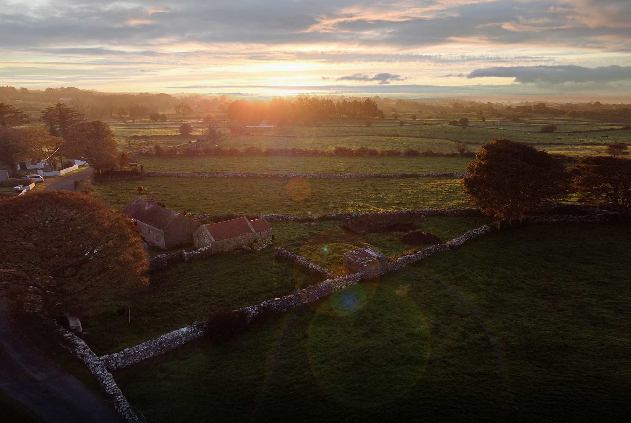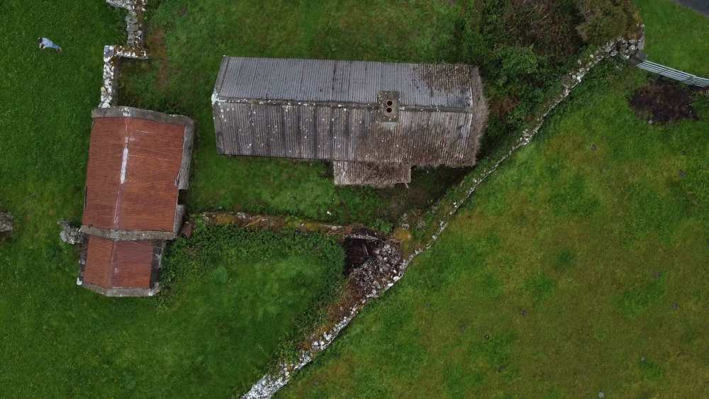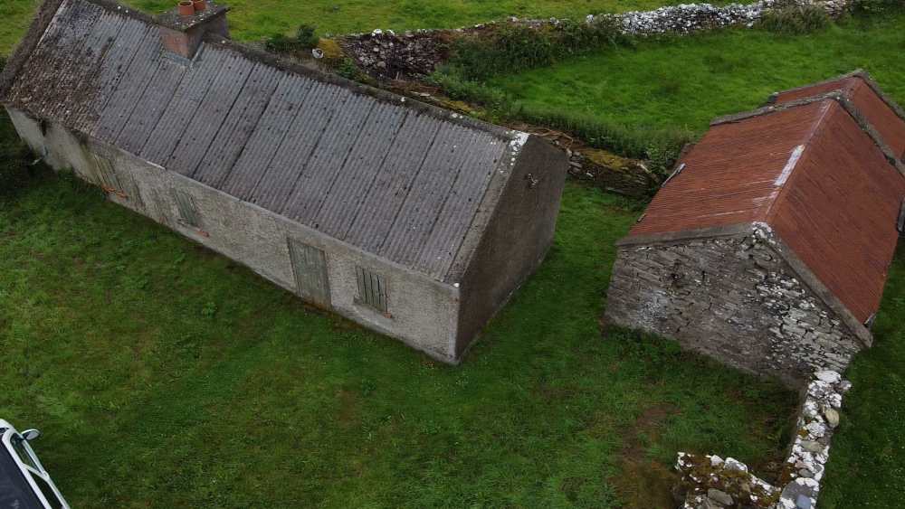 Our starting point is a mostly untouched vernacular 3 room Irish Cottage. With countless layers of lime plaster on the walls and no plumbing of any kind. Sometime in the 70s the outside was concrete rendered, a limited electrical install was added, and the remains of the old thatched roof was covered over with asbestos cement boards. Close to the house is a small traditional stone shed. The whole area is criss crossed with beautiful dry stone walls.