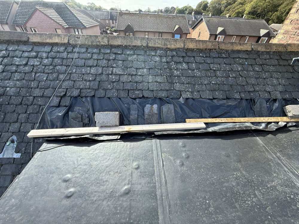 Any help would be appreciated. I'm looking for any info regarding merging the pitch roof on the left to the pitched above the flat roof. At the flat roof to pitch roof transition osb3 has been ran around 250mm up the pitch so the EPDM had a good surface to bond to.