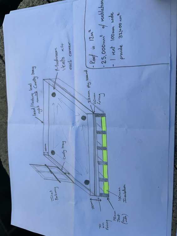 Looking for advice on how big this step needs to be to accommodate a warm roof from the top of the steel. The block built in is 150mm with the thought I’d go with a cold roof system but didn’t like the ventilation options and been told to avoid cold roof so going with a warm roof and going to build this step bigger. The opening is going to be a patio door opening outwards (Juliet balcony).
