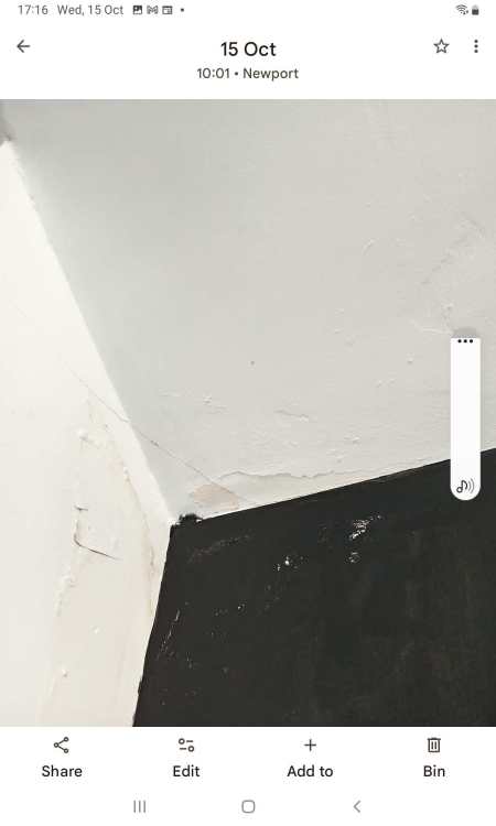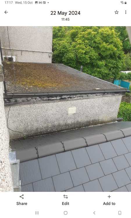 Pitched kitchen extension roof leaking at ceiling corner and further along the same wall.. The wall adjoins my neighbour's extension (terraced houses on a hill). Roofer said a new roof and replacement lead valley would solve the problem. It was leaking again within a year of the new roof. Roofer inspected it but had no idea why and did not attempt to fix it. The photos of the ceiling inside are 3 years since the new roof . It doesn't always noticeably leak after rain and seems to be a gradual thing. The valley has been cleaned twice since the new roof was done so blockage or debris is not the cause. Eventually it will make a hole in the ceiling and rot the felt as it did before the new roof. Other roofers have looked at it and all said different things. Any ideas of cause and solution please?
