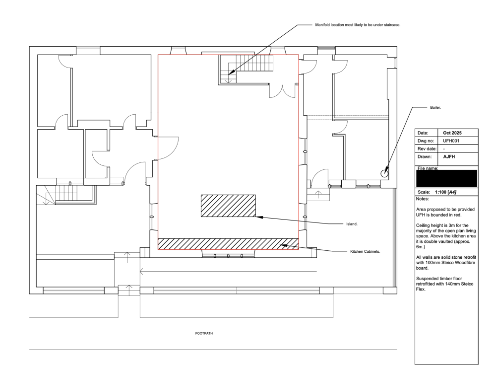 Morning, we are looking at UFH for an open plan living space (Kitchen, living, diner) in a church we are renovating.