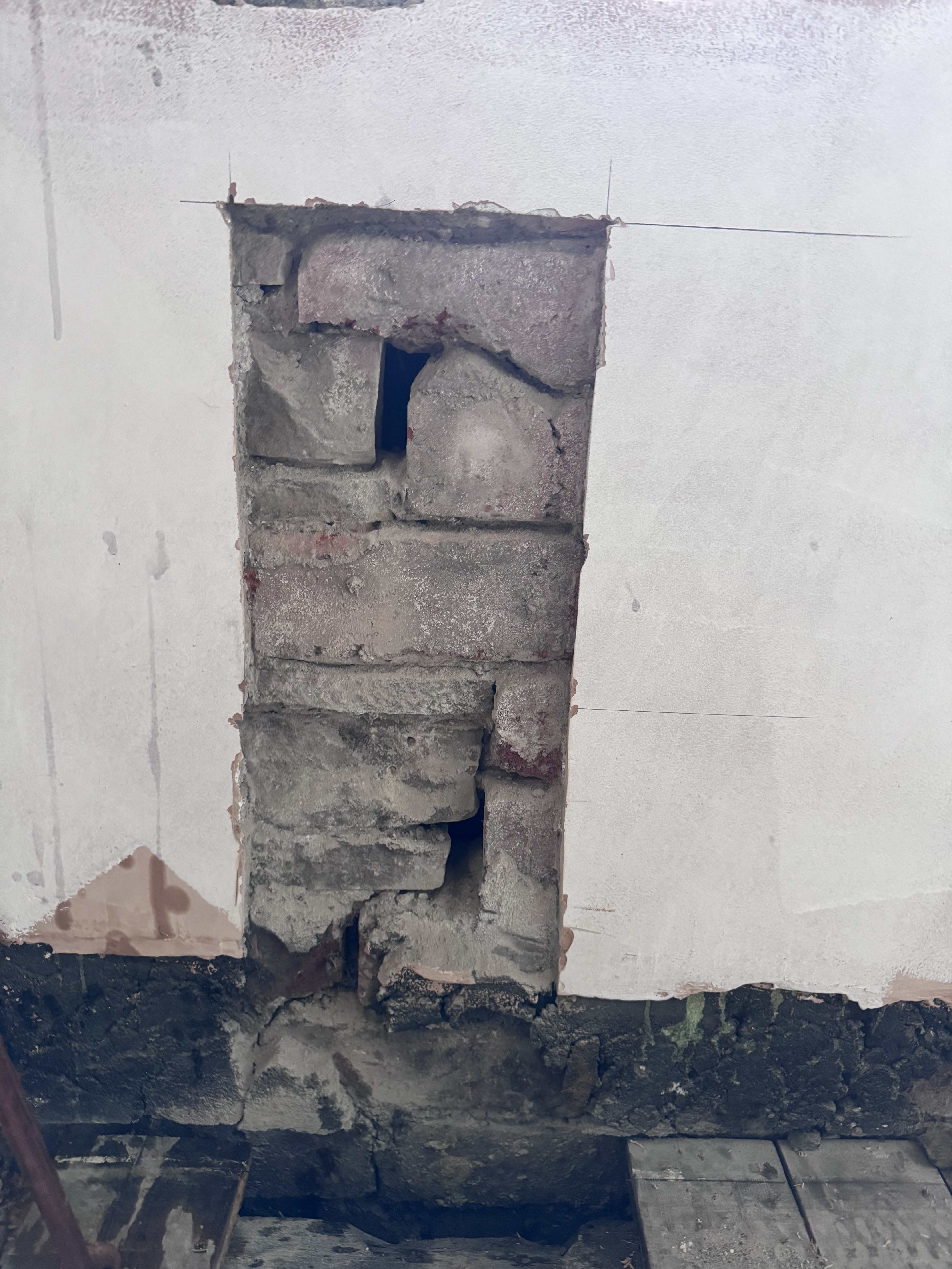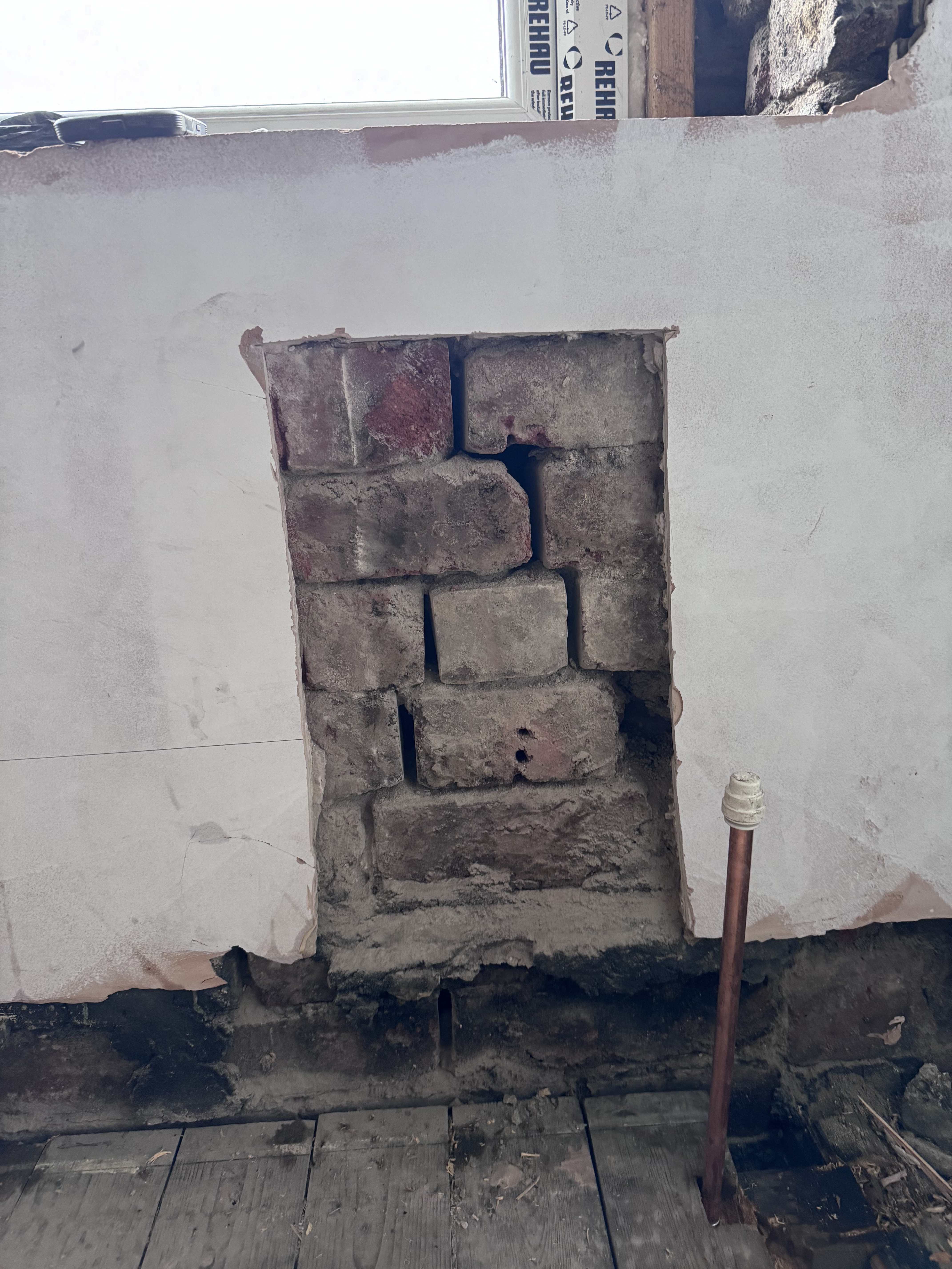 We are looking to hang a radiator on this wall but have been told by the plumber to strengthen for fixings. Any ideas or suggestions on filling the brickwork and getting back to a skim state?