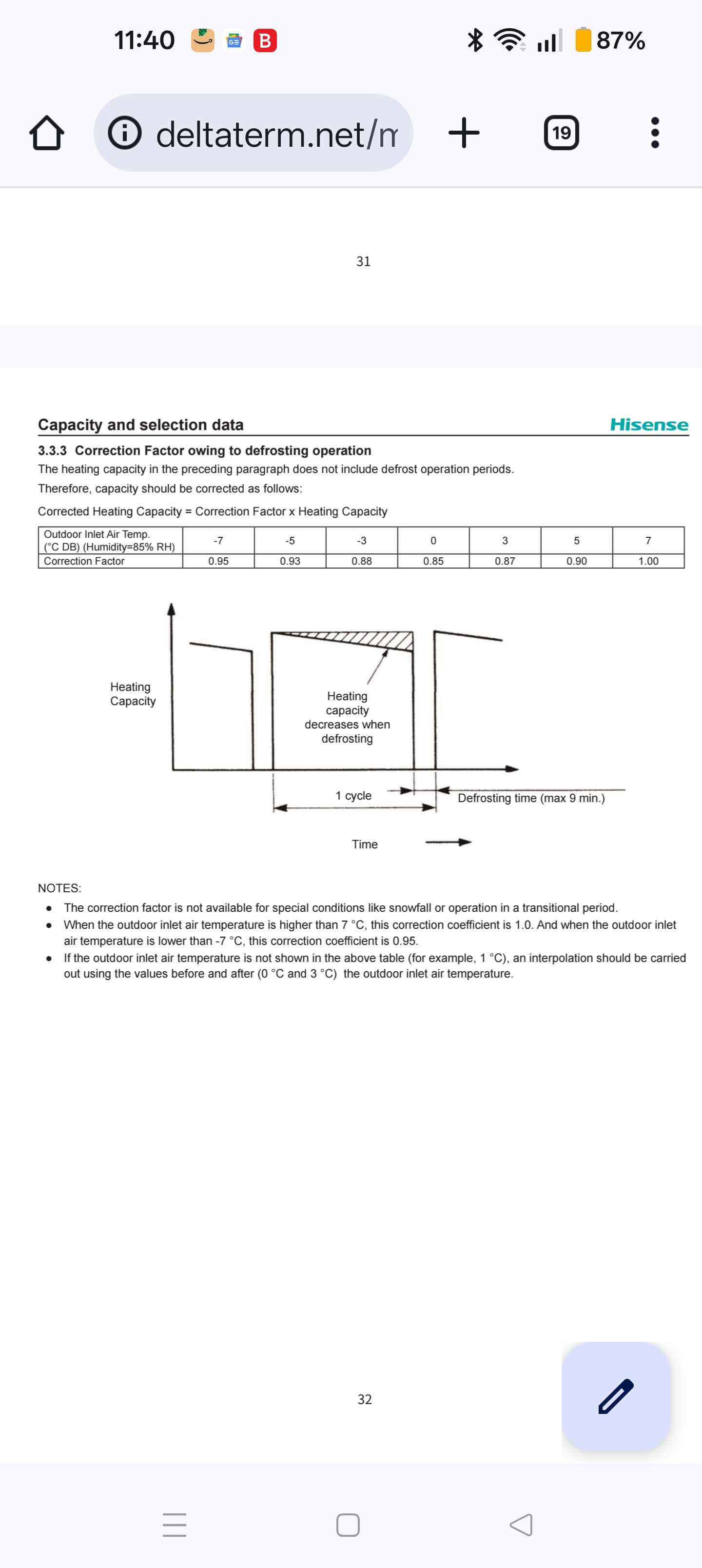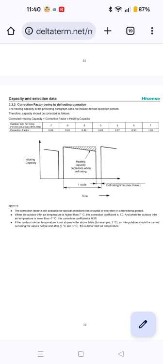 Looking at a technical manual today, HiSense monobloc, and split system. It gives all the parameters to help size the heat pump and for the first time I have seen a manufacturer take due diligence for defrost. Giving derate required for various outside temps