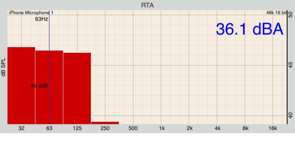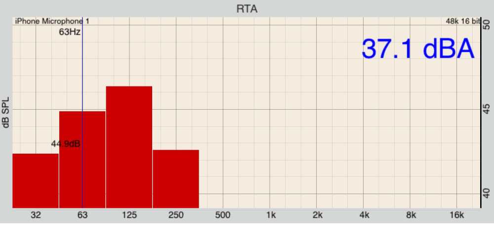 Not sure how I missed that. I just downloaded it, but not sure what I’m doing. The 1st picture is with phone microphone a few mm below the centre of the terminal in bed 1. The 2nd picture is the same test in bed 2. Obviously the results are jumping around a bit - possibly as I’m not that still! Only a snapshot in time, but it does appear that bed 1 is slightly more weighted to the lower frequencies than bed 2 for whatever reason. unit currently on 30% as someone in the bath! -