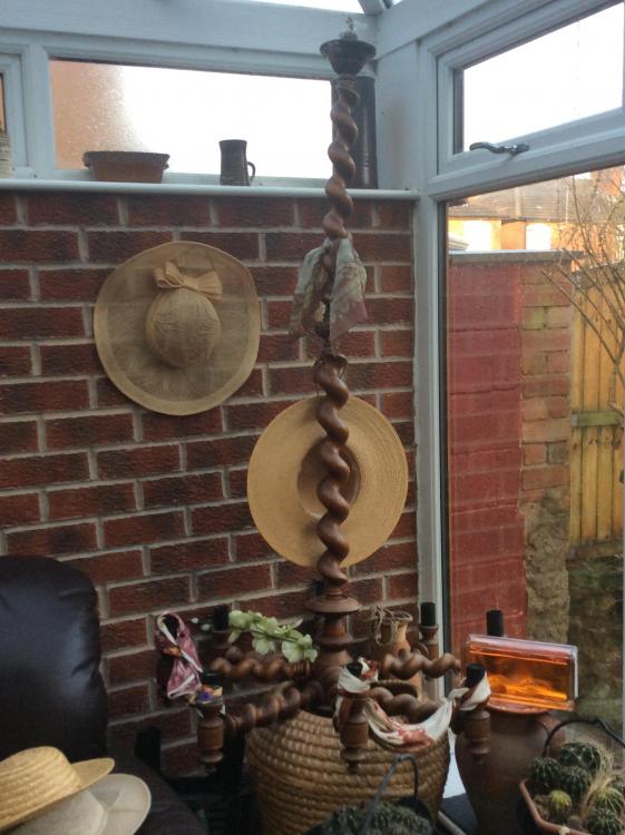 Your house is too traditional for one of those. You want one of these. £75 if you come and collect. Solid oak. 1.8m high. ES bulbs. Comes with luminaire glass covers. The support is in 2 sections, so can be 1m high.