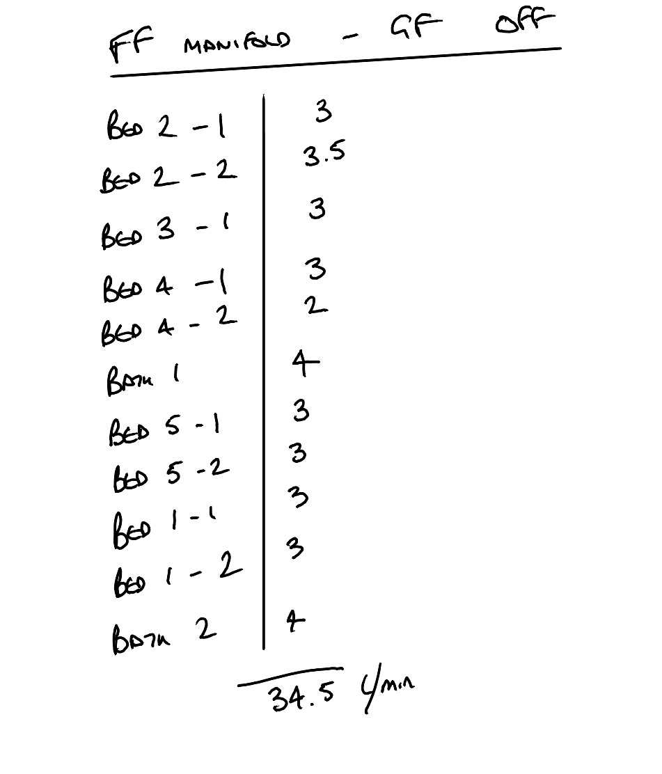 I just turned my GF manifold off and checked the flow rates of the FF one Basically when the downstairs is on its looking approx 24/25 When the downstairs is off its about 35 Is that what people would expect? I will look into the pump settings shorty
