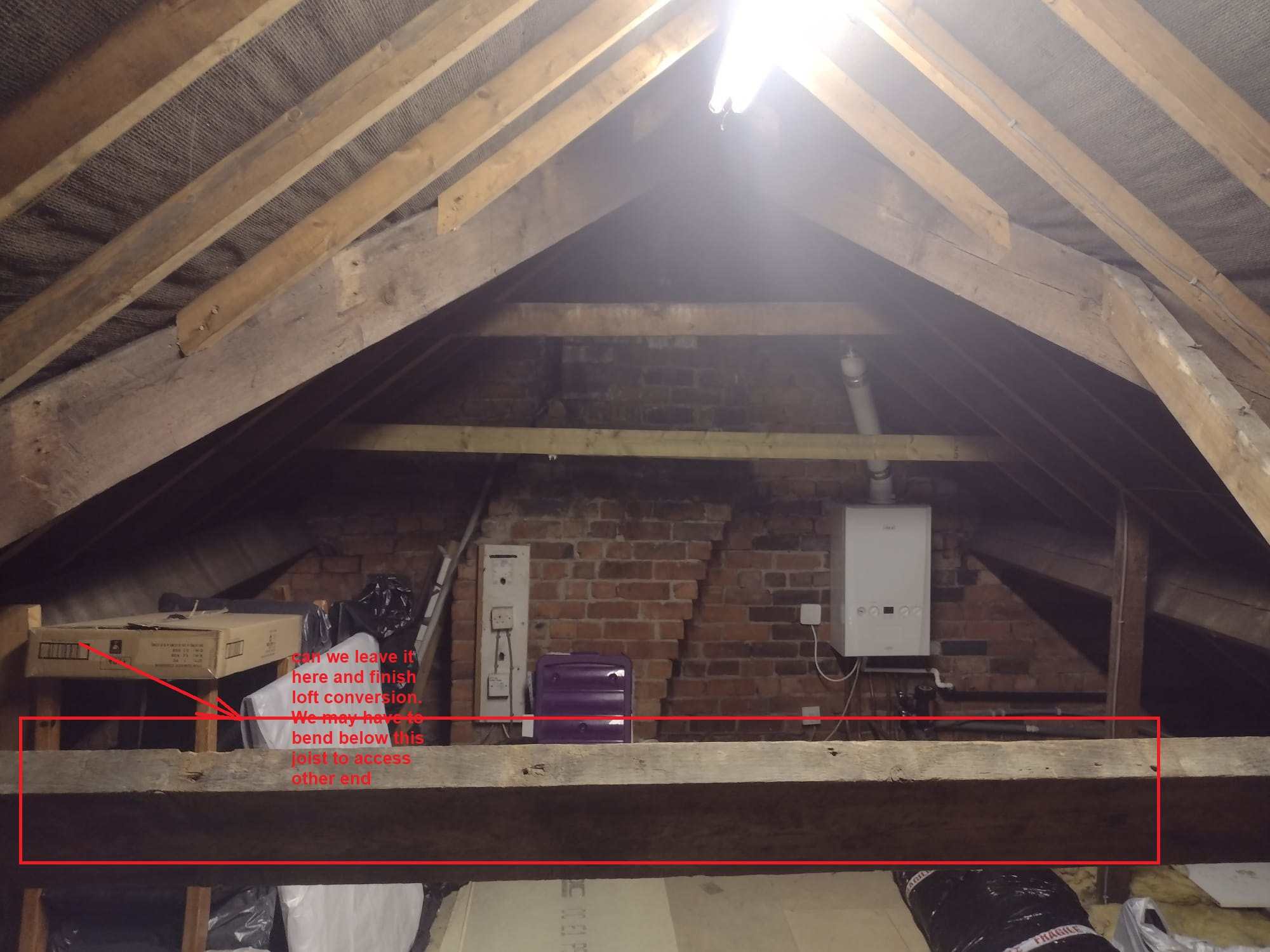 Redbeard Posted May 16 Posted May 16 I suspect we won't get anywhere nearer answering your question till you explain more clearly what you wish to achieve by carrying out the work. Obviously without any dimensions, or details as requested by @saveasteading I can only guess what you hope to achieve. The tie-beam cuts across the space, but how big is the space overall? What proportion of the available space is on either side of the tie? What is the height at various points? What size are the joists? Often loft joists are 75mm deep while (depending on the span) joists for a room could need to be 200, 225 or more (but none of us can know without more detail). Where would the stairs be? The only way I could see of it being acceptable to BC is if you converted the largest space on one side of the beam with the rest left as void or subject to approval) storage. If the use of the room involved wriggling under the beam what would be the effects on emergency egress, in case of fire, say? You said On 21/04/2025 at 01:32, Mubbashshir said: 2. Can we keep this Rafter tie joist as it is and finish loft coversion. Will it be approved by BC?. It may look odd because to go on other side of the tie joist, we have to bend below it or go over it. However we can remove later when we can construct supporting structure as this may require re-constructing whole roof by removing existing room. How will you 'remove later when we can construct supporting structure' and why can't you do that in the first place? And have you asked this question directly of your local Building Control dept.? Lots more details, please, and then we may be able to help.