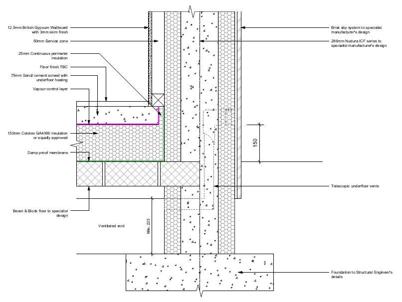 Mulberry View Posted May 5 Posted May 5 (edited) In the ever-growing list of c'ockups, I'm fearful of another. This is how our Architect detailed our Foundation build-up, I'm specifically thinking about the sub-floor vents at this stage. Is it normal for them to be positioned at this height? (i.e. the top of the vent level with FFL) We have various ground-levels around the building, but that's the height I put all of ours relative to the levels in that part of the building. So, what is the intention where level access is needed? Edited May 5 by Mulberry View