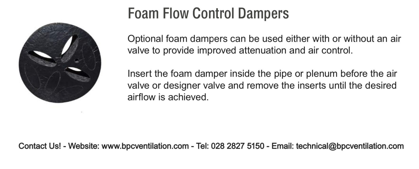 Nick Laslett Posted October 5 Posted October 5 (edited) BPC used to do foam dampers at the plenum. They have something similar here. https://bpcventilation.com/collections/acoustic-solutions/products/quiet-vent-adjustable-flow-control-damper The previous version was talked about on BuildHub, years ago. I did find these products, which I liked the look of: https://ventmann.co.uk/products/inline-foam-damper?srsltid=AfmBOoq-8qHhLQ_amR3s3V39sjjcbggu86fNVxxn-ttVyy9-eZ3zq-lI Edited October 5 by Nick Laslett