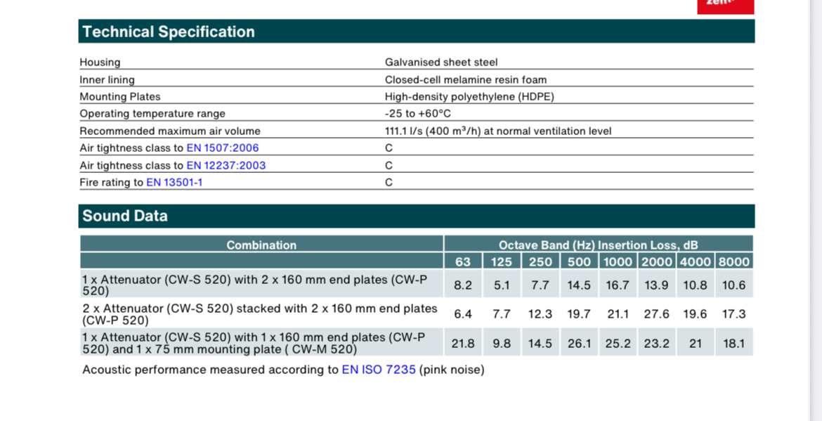 Mattg4321 Posted Sunday at 21:16 Author Posted Sunday at 21:16 (edited) On 25/10/2025 at 22:52, Mike said: Zehnder aren't cheap, but that looks like list price. It should be possible to knock at least 30% off that. The supplier I used (in Germany but delivery to France, not sure if they'll deliver to the UK post-Brexit) are currently offering the main body at a 43% discount (€205 including VAT). You also only need one unit to silence 10 terminals. Looked into this more thoroughly. I had thought you needed to be buy the manifold and also the attenuator, as well as both end plates (1x160 and 10x75). It appears I’d only need the attenuator and the end plates, which makes the cost slightly more palatable. Looking at the data and particularly at the low frequencies, what I find hard to get my head round is how 2x attenuators stacked, performs worse than only 1x at the low frequencies. Whats also slightly concerning is no 32Hz as part of their test. Would be frustrating to spend 300 odd quid and a few hours and not get a satisfactory result! Edited Sunday at 21:16 by Mattg4321