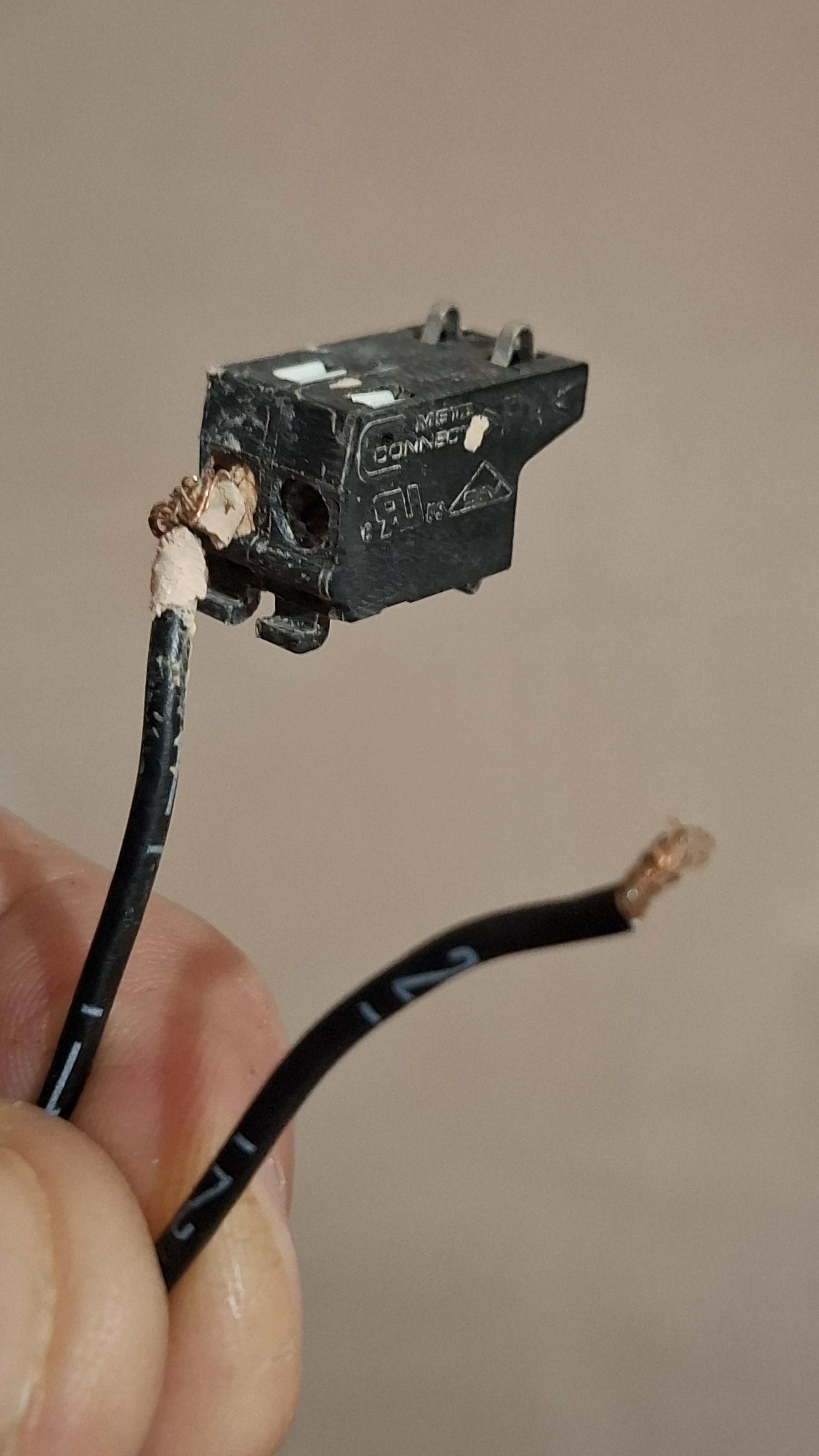 JohnMo Posted Thursday at 07:48 Posted Thursday at 07:48 1 hour ago, HughF said: Screwdriver pushes down on the white bit at the top, wires come out. Tool-less connector. So a tool-less connection that needs a screw driver - so not really tool-less when you take it apart. It's a bit like a Wago connector. Instead of a lever arm, your connection uses the white bits to release the friction clamp. Your wires either need a solid crimp on end or if you cut the current ends off the wires, then do a tidy twist in the wire strands push in the white bits you should be able to insert the wire. It is unlikely the connector is broken unless it was something you did into it.