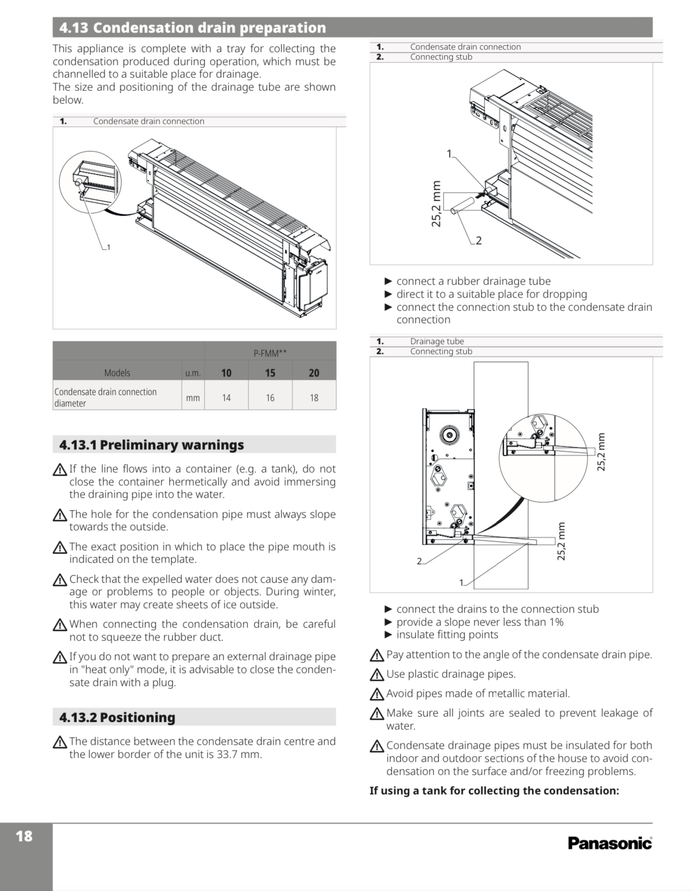 SBMS Posted yesterday at 20:01 Posted yesterday at 20:01 Currently looking at the Panasonic aquarea heat pump and the wall mounted fan coil units upstairs. Has anyone any experience of piping these up and can advise on where/how the condensate outflow is connected? Can’t find any installation manuals online but have seen a drip tray for a parts list. Would rather it was plumbed in and hidden Than a drip tray. anyone installed these? Looking at the P-FMM15 for reference - https://www.aircon.panasonic.eu/GB_en/model/p-fmm15/
