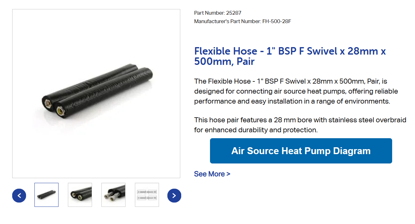 Just a note for anyone looking at the BES flexible hoses for ASHP. Part Number: 25287, Manufacturer's Part Number: FH-500-28F