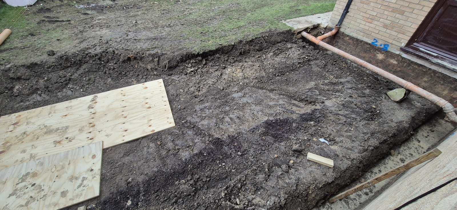 First of, anyone have any suggestions for ways that I could proceed with the original concrete fill foundation plan but mitigate against the collapsing ground conditions? Groundworks guys said that even with shoring or shuttering, they think the amount of wet ground and collapse that was happening before, it would be difficult to keep the trench sides stable and the bottom clear to full depth.