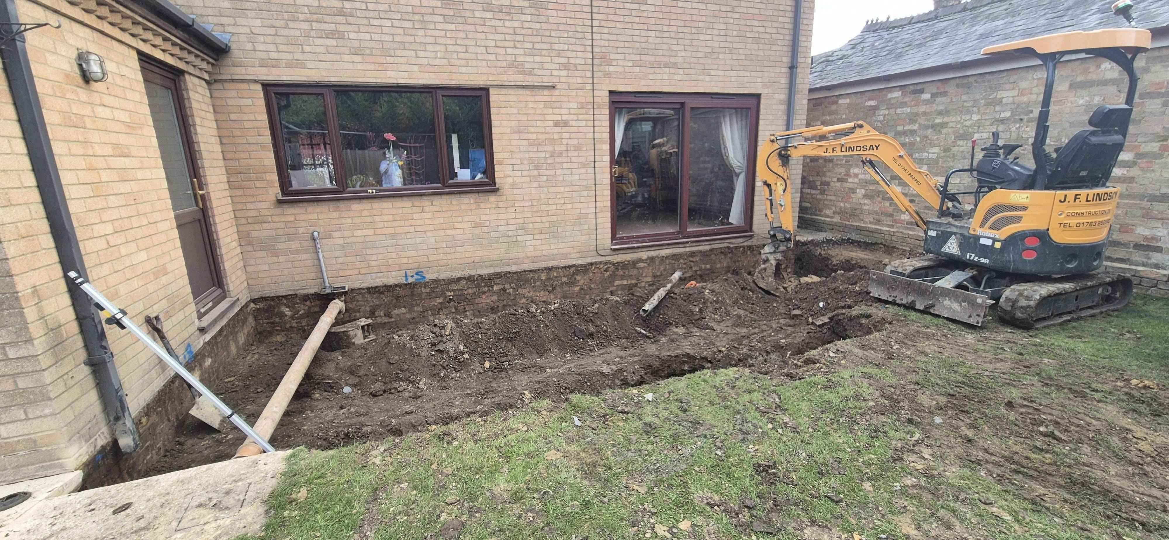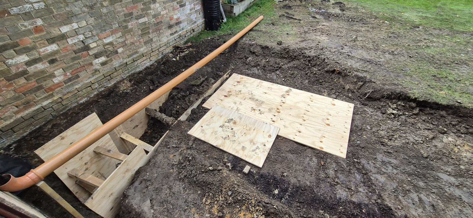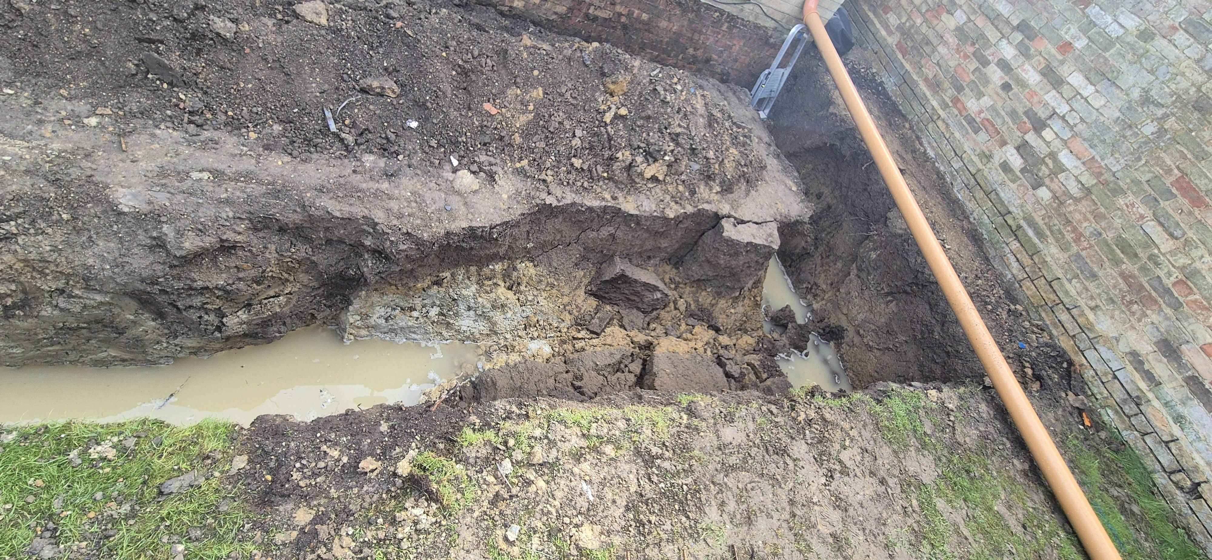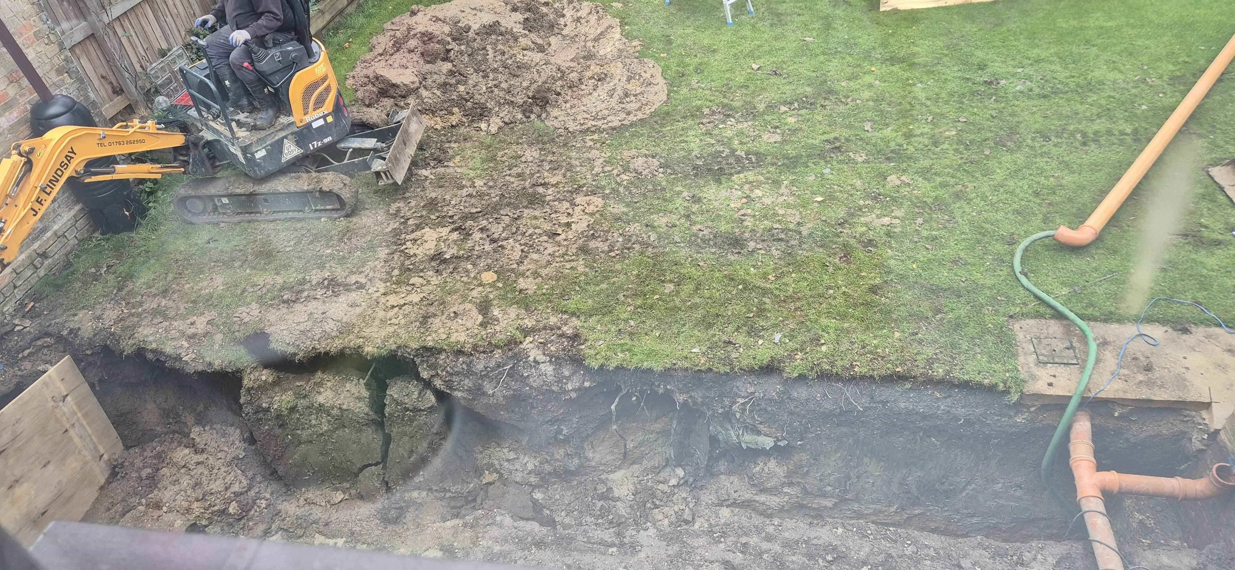 SE drawings called for 1.65m deep foundation. We began excavation last week and had just finished it all at depth, including oversite, when one small corner within the oversite area collapsed. No biggie, plan was to dig it out and pump out any water ready for BCO inspection. Overnight, significantly more of the trench collapsed. the following day, when clearing the bottom of the trench, it was also noted that along the short side, which is close to a party wall, the ground was beginning to slip closer to the building. This was immediately shored up with ply and the decision was taken to begin backfilling the trenches before any further collapse happened, particularly ahead of the storm that rolled through yesterday.