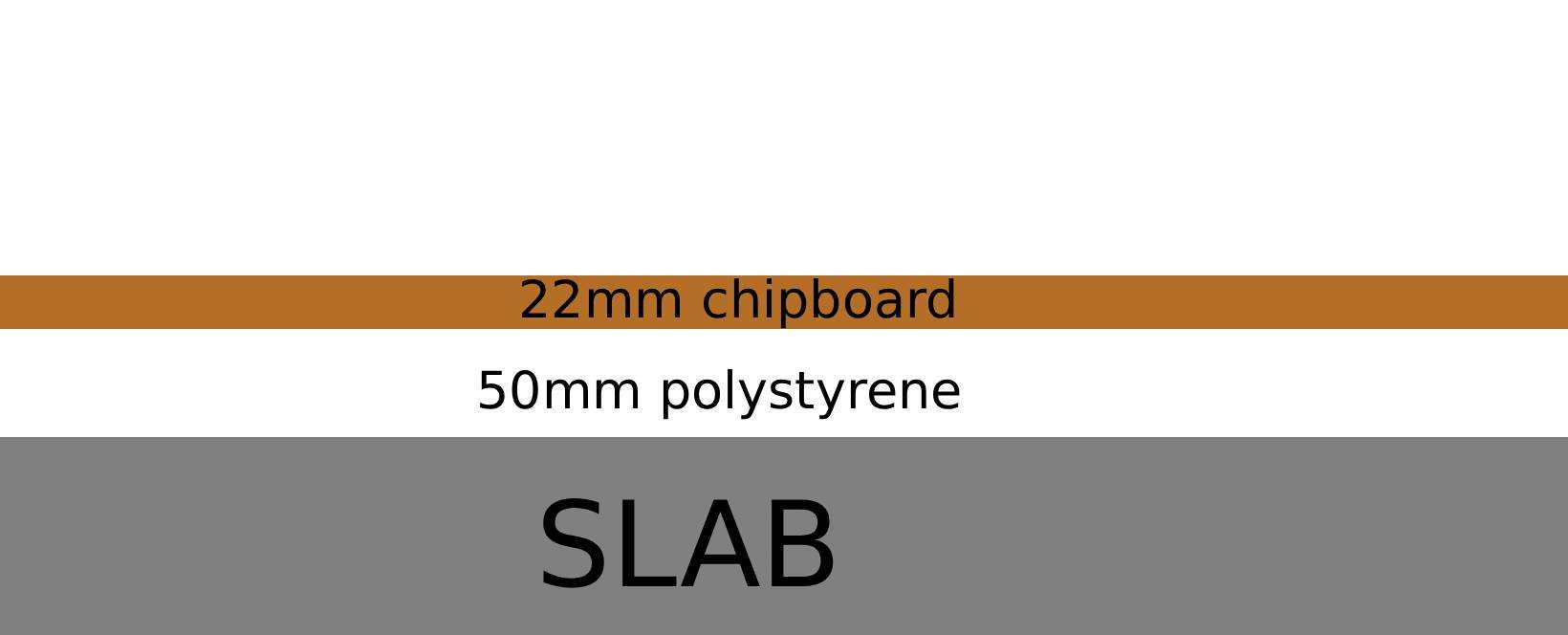 Workerbee Posted Sunday at 21:09 Author Posted Sunday at 21:09 (edited) Thank you for the replies, and sorry for my poor explanation! It's a bungalow, and in terms of compressive strength I think any of polystyrene, PIR or XPS should be fine. I've done a crude drawing of what's currently there: The finish is currently carpet or tile. I'm basically just thinking of replacing the polystyrene with either PIR or XPS (ravatherm seems to have a decent lambda value), and replacing the chipboard with insulated tile backer board. This will mean I can bond everything together with suitable adhesive so that it's technically no longer floating, because the finish will be natural stone, which can obviously cause issues on a floating floor otherwise. I wondered if the ravatherm might have two benefits over PIR: would the fact it's not foil faced mean it bonds better? And more importantly does the higher compressive strength equate to lower vibration, or is that a separate characteristic? It's an all-electric house, so that's why I'm thinking of electric ufh. It'll probably be secondary heating, but given I'll be installing oil filled radiators it'll end up being just as expensive! Thanks again. Edited Sunday at 21:19 by Workerbee