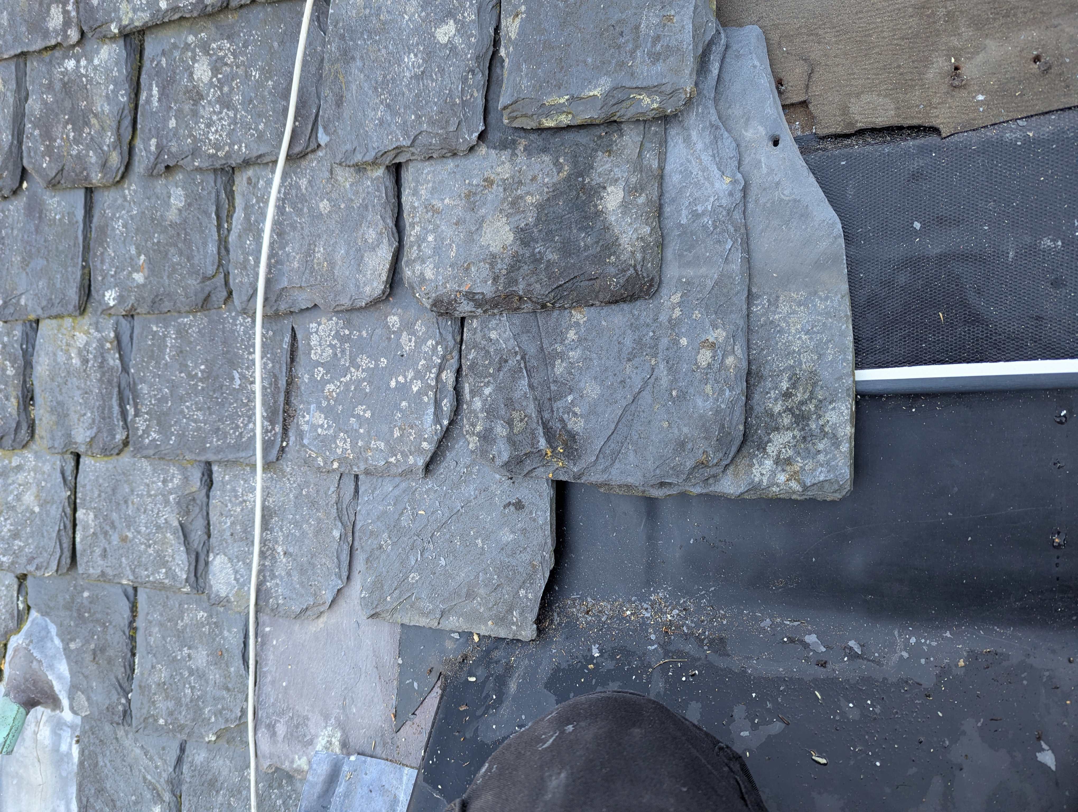 gaz83 Posted Sunday at 18:49 Posted Sunday at 18:49 Hi any help would be appreciated. I have a pitched roof that terminates onto a flat roof. I recently laid the EPDM on the flat roof and due to the pitch roof sarking boards not being in great condition I overlaid with 9mm osb3 30cm up the pitch so the EPDM had a good surface to bond to. I have went to dry lay the slates and the osb has caused the bottom of the eaves course to kick out about 1" from the pitched roof. Is this acceptable?