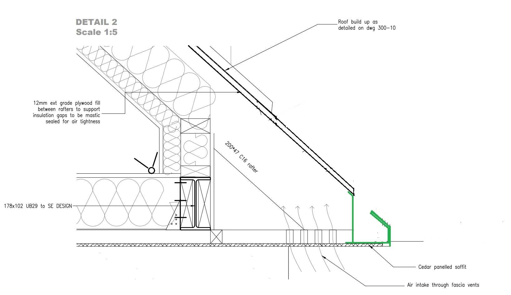 Tony L Posted 7 hours ago Author Posted 7 hours ago 1 hour ago, torre said: Looks like you could vent below your drip into the gutter as the equivalent to over fascia vent if you had a simple gutter fixed outside Thanks @torre. I don't follow what you're saying, but your comment makes me think I could have aluminium bits made up to match the roof & conceal the gutter, which would be attached to the plumb cut on the rafter feet & look something like this.