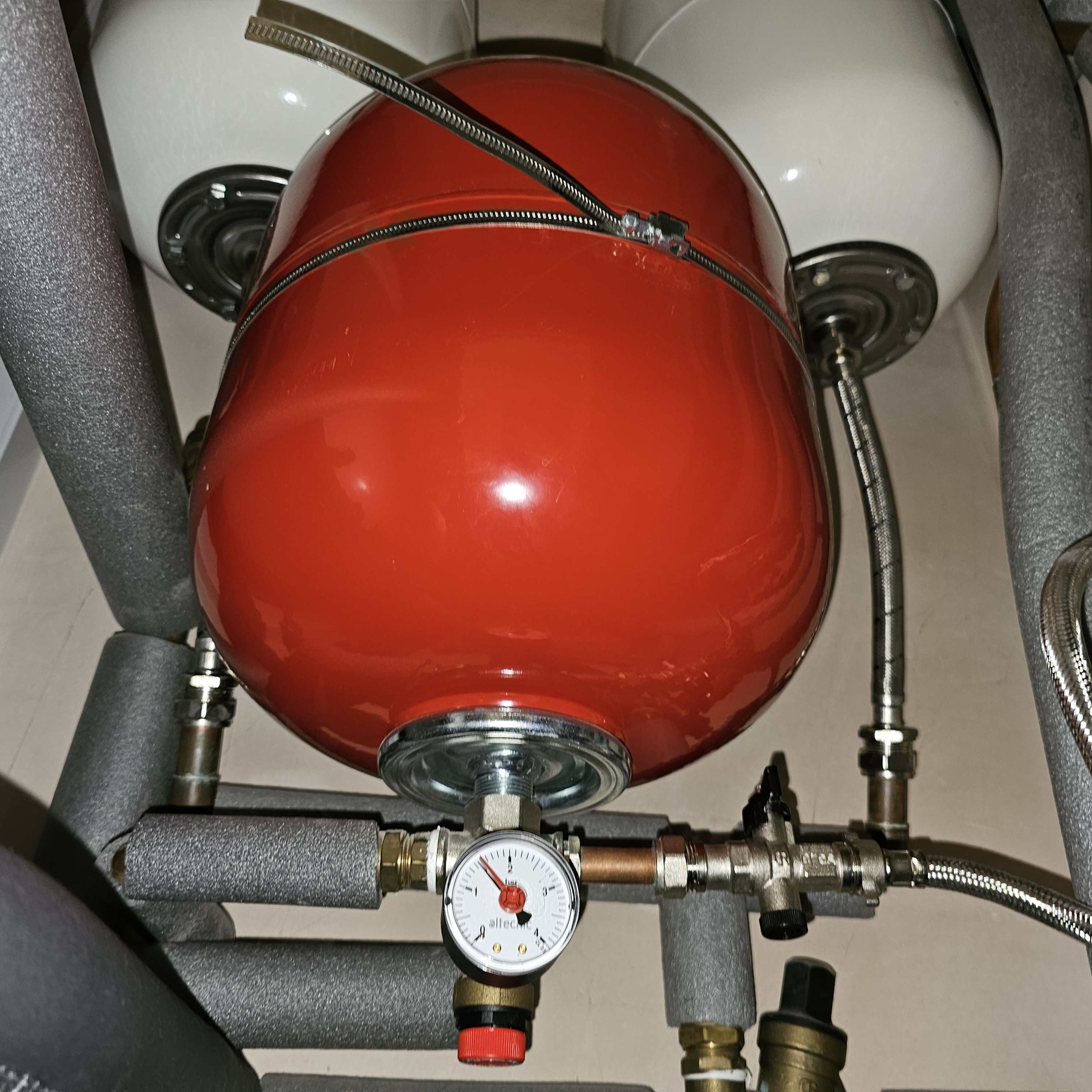 ProDave Posted yesterday at 15:43 Posted yesterday at 15:43 Oh you have 3 in total. The red one will be for heating, that is your one with the immediate issue. The TWO white ones are for the hot water. There is no indication that there is actually an issue with those yet. The fact this guy suggests replacing the 2 white ones but has not addressed the low pressure on the red one has done nothing to give me confidence in him. Lets tackle each separately. The white ones don't have a pressure gauge, they will be at mains water pressure. They are to take up the expansion when the water in the tanks gets heated. IF they have a problem, you will see water being discharged via the tundish after you have say had a shower and used up some hot water and the cold water that has entered the tank to replace it is being heated. If you want help identifying what the tundish is, post a picture of the pipework below those tanks. A further note, those tanks are of the type where you can take that bottom flange off and use that access to replace the bladder if it has burst. But I suspect the labour charge would make that more expensive than just replacing it, if they are faulty. Summary. If you just accept that quote, you will get 2 shiny new white tanks that may or may not be faulty, and the low pressure on the red one will still be the same. 1