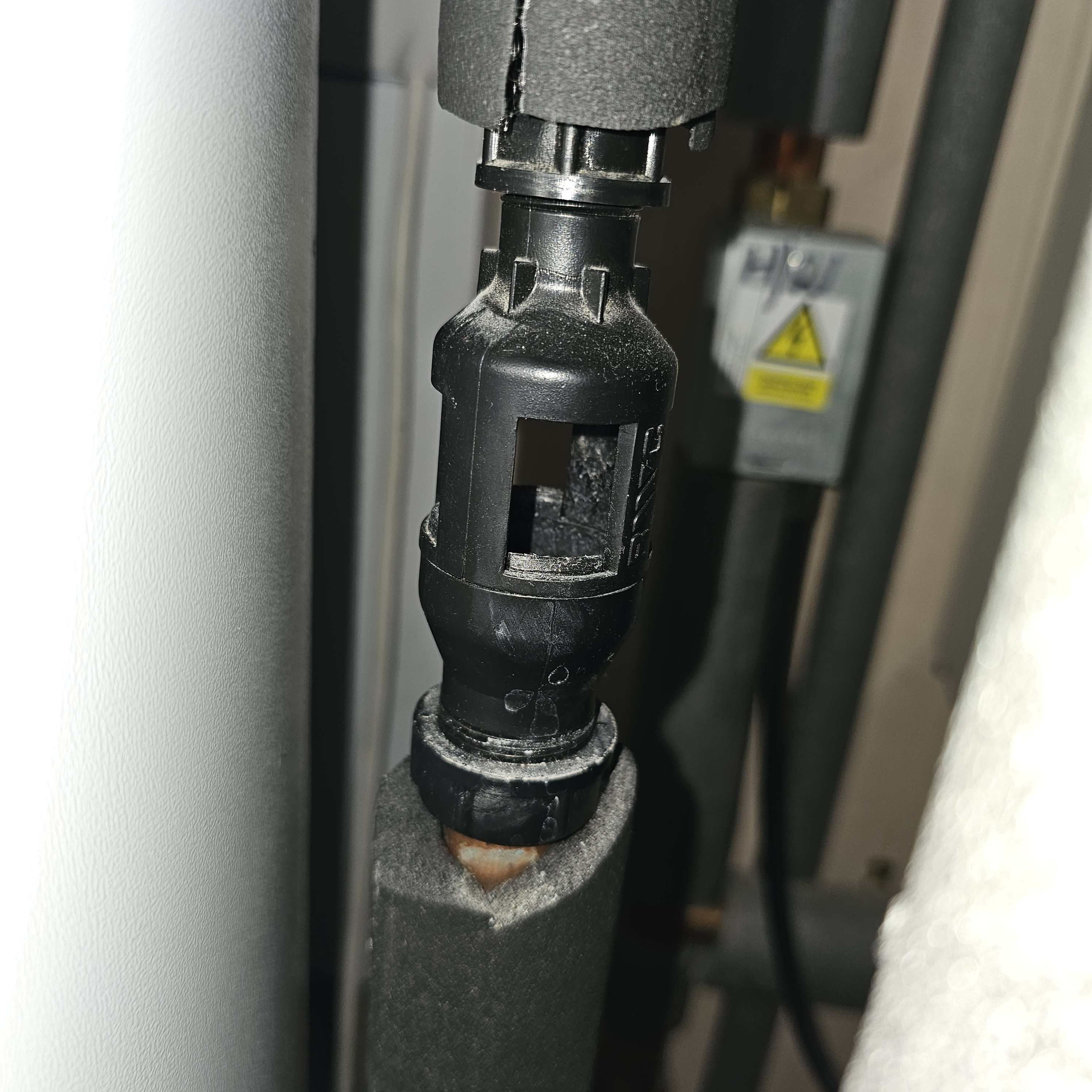 ProDave Posted 4 hours ago Posted 4 hours ago "servicing a heat pump" might be slightly specialised, but just about any plumber should be able to do all the normal things related to the rest of the system like expansion vessels pressure checks etc. Those would all be the same if you had a gas or oil boiler as the heat source. So it looks like the red heating expansion vessel is okay. Just the 2 white ones to check. Can we have a photo of the pipework under the tanks? We are looking for a Tundish that will look a bit like this When you find something like that, have a close look at it. If there is a problem with the 2 white tanks that the plumber wants to change, then whenever it heats the hot water, you will see water dribbling down the inside of this. It should be bone dry normally. 1
