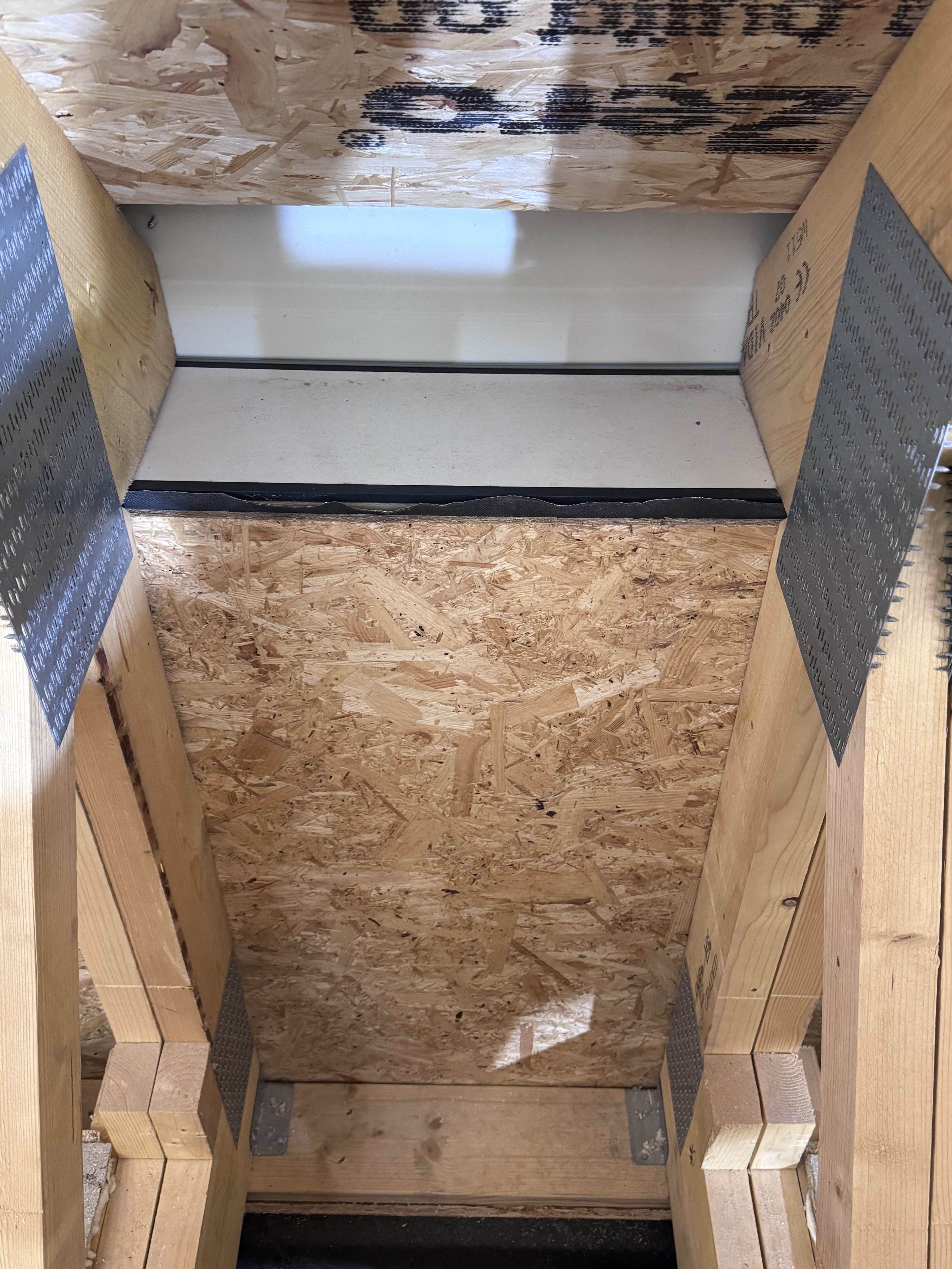 snowyshoes Posted 2 hours ago Posted 2 hours ago Hi all, Currently embarking on a self build project. Currently wind and watertight and in the process of insulating. The house is very exposed and will continue to experience terrible weather. Likely the one of the worst places in the country for wind! I have a continuous fascia vent all around the house but I have noticed during bad storms that the rain literally drives in. So much so that there will be a puddle on the floor. Its a 1 and ¾ storey house. I have attached a picture and I shall try to explain….Rafters will have 50mm air gap then 170mm PIR. This will lead down to the eaves where it will meet the PIR heading ‘up’ the wall. The PIR on the wall will be flush with the OSB. My concern is the water driving in and lying there, with the ends of the rafters soaking it up, and may end up leaking down the wall PIR and rotting out (eventually) the OSB. Is this fine as the air gap will ensure it keeps drying out or do I have a legitimate concern? When the wind and rain drives in it puddles on the soffit boards. Is there anything I can / should do?
