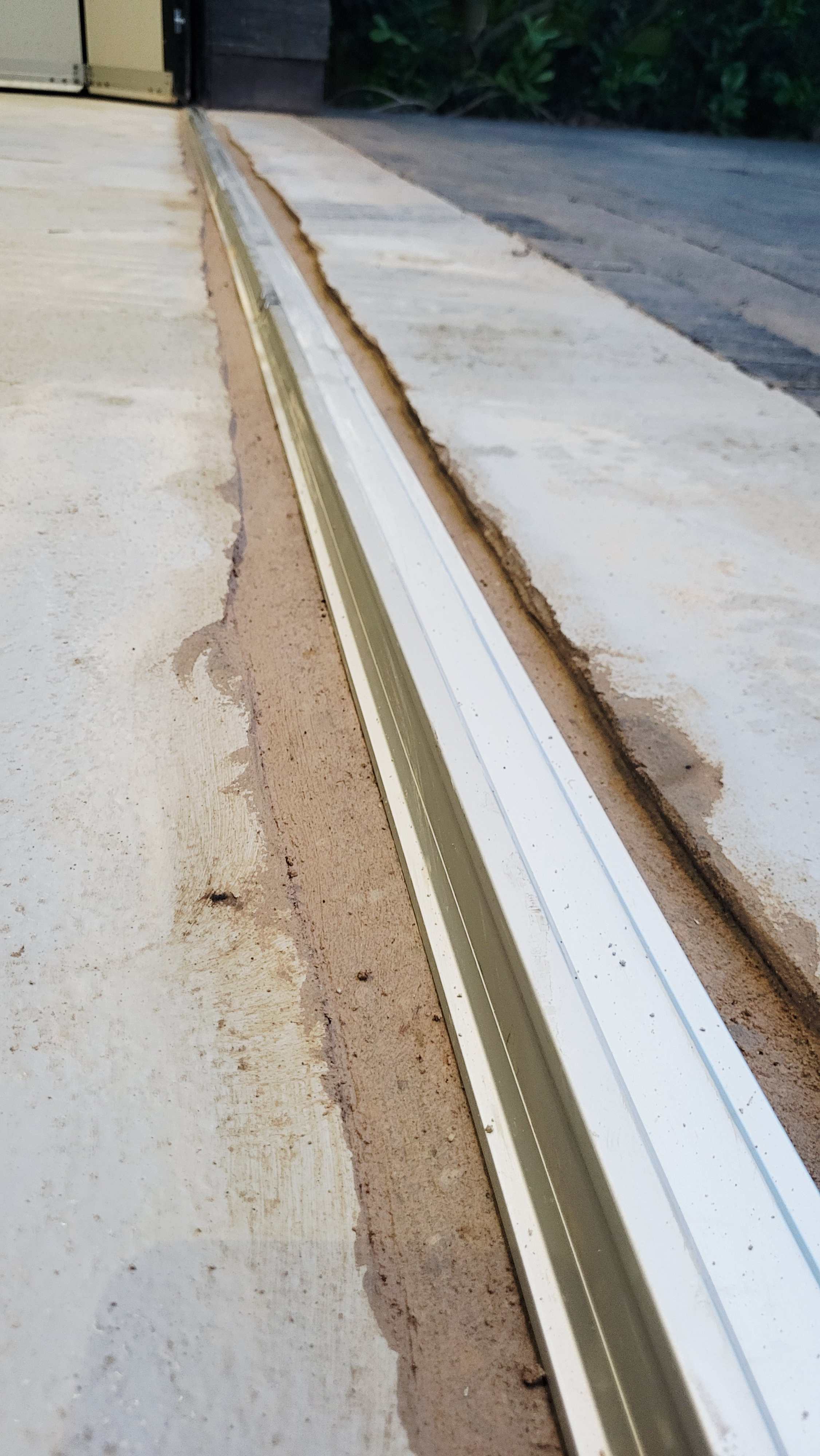Andeh Posted 6 hours ago Posted 6 hours ago We have had to have our garage door track replaced due to issue with the sliding door sticking. Hormann & garage door company have been brilliant over the years, but I do now need to try and tidy up the 'final solution' which was grind the floor flat and relay the track. I now need to tidy up this small trench, with the track installed... It is entirely no removable. I just want to improve it visually, and will then repaint with epoxy floor paint. Any tips? Thin concrete mix? Reinforced? Any other clever ideas? Thanks....
