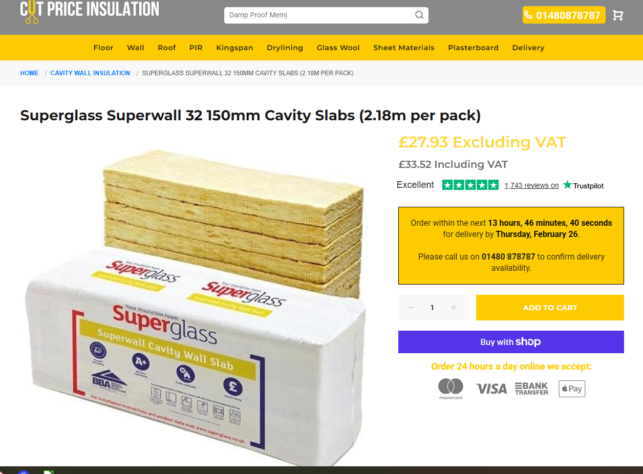 Iceverge Posted 1 hour ago Posted 1 hour ago (edited) 1 hour ago, flanagaj said: I have put the numbers into the knauf calc and I end up at 0.19. The other issue is that I am using timber clad and not render. Change that to medium blocks inside and outside and you get to 0.18. That's a nice calculator actually by Knauf. It is fairly optimistic with the values it's allowing for the airspace behind the plasterboard though but it'll get you through regs which I'm getting the impression is the aim. Hemelite blocks are a small bit cheaper too. Superglass is a bit cheaper again than Knauf. £51.37 inc VAT per m2 for the blocks and insulation. Edited 1 hour ago by Iceverge Correcting mistakes made again!!