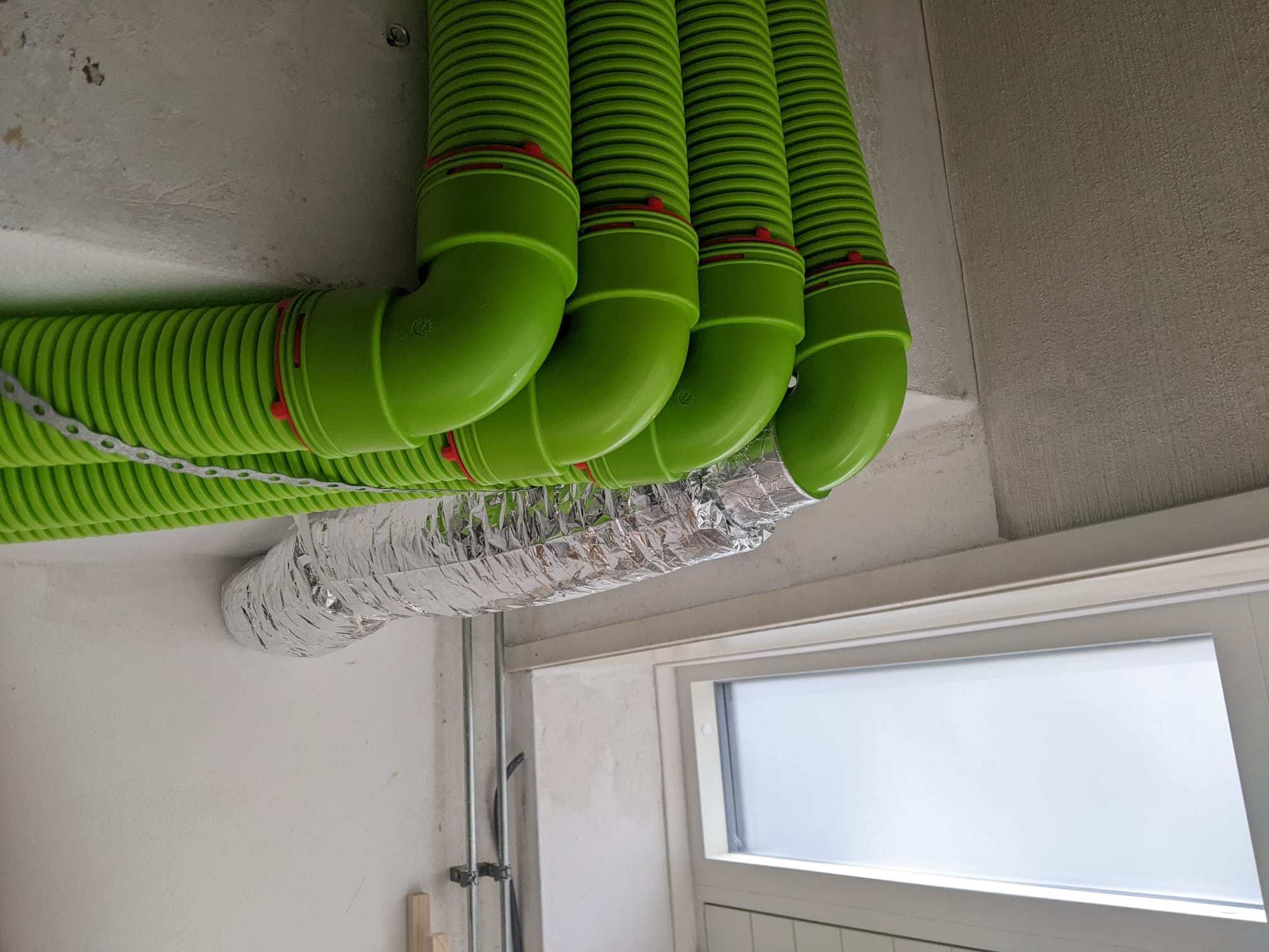 Jolo Posted 7 hours ago Posted 7 hours ago (edited) Now that my MVHR saga is finally over, I'm ready to box in the ductwork. Luckily I was able to route the ducts with minimal damage in the rooms themselves, as upstairs we had big enough ceiling voids, and downstairs all rooms connect off the hallway. But this does meain that the hallway has taken the brunt of the routing -- see photo! Now as this ceiling is pretty high (2m 60cm) I'm not worried about dropping it 15cm or so. It's also an opportunity to add better lighting (currently the only light is towards the back, it really needs one at both ends, or even three). The wall on the left side is wood, and the right side is brick (it's a load-bearing wall), but the ceiling is a bit of a mystery to me. It's either concrete or it might be a reinforced brick floor (1960s Dutch "Nehobo" floor, like a wall made of hollow bricks, with steel bars for strength, laid on its side). But whatever it is, it's a real pain to drill into. I've managed it here and there, but I've also managed to break at least two drill bits in the process! So ideally I'd like to get away with no (or minimal) drilling into the ceiling, if it can be avoided. Though if I have to, it's possible. However the hallway is only 1 metre wide, so my question is, do I even need to drill into the ceiling? If I put wooden battens along each side wall, then cross-battens across the span, will that suffice to hold a single-layer plasterboard ceiling? Or is a metal frame the better/easier option? Or do I really need some sort of support along the middle to prevent sagging? Thanks in advance! Edited 6 hours ago by Jolo
