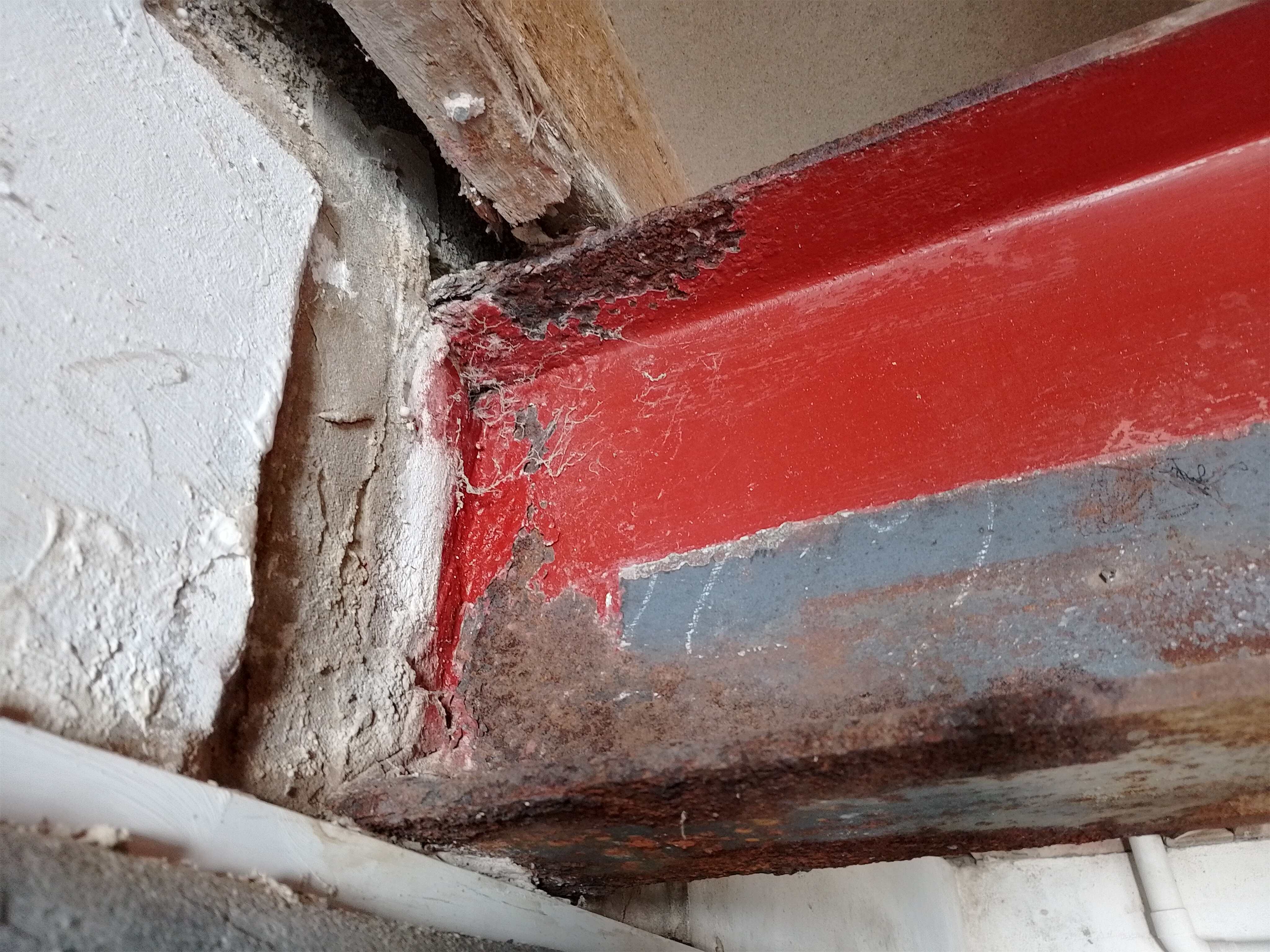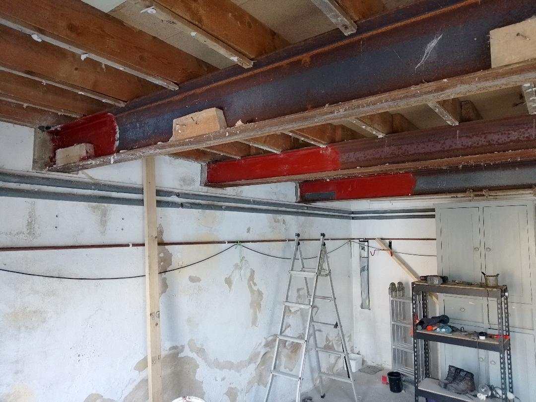 Spinny Posted 59 minutes ago Posted 59 minutes ago (edited) When you say 'old boy surveying engineer' do you mean a qualified professional structural engineer with professional insurance providing a paid for written SE report to you as customer ? Why exactly do you believe something has to be done with the steels ? Do you have any movement or cracking anywhere around the house and garage ? Is it just your personal concern over the appearance of rust and concern to do the right thing for the next 50 plus years ? Rust on steels is common. We had a much smaller pair of steels exposed during our extension work that had been in place since the 1980's and had plenty of rust (see photo). I asked our structural engineer whether they should be replaced or anything. He came and poked them hard with a screw driver looking for anything more than surface type rusting then said they were good for at least another 50 years. So I wire brushed as much rust off as possible by hand and using drill attachment, then used Neutrarust 661 liberally, then 2-3 coats of an iron oxide paint. See Pics. Not saying your situation is the same, but before embarking on costly structural works - presumably to make sure the house is fit for the next 50 plus years - you really want to base it on proper written professional advice. I am sure your house insurer would expect the same. (PS I am not a builder, engineer, etc, just joe public) Edited 58 minutes ago by Spinny