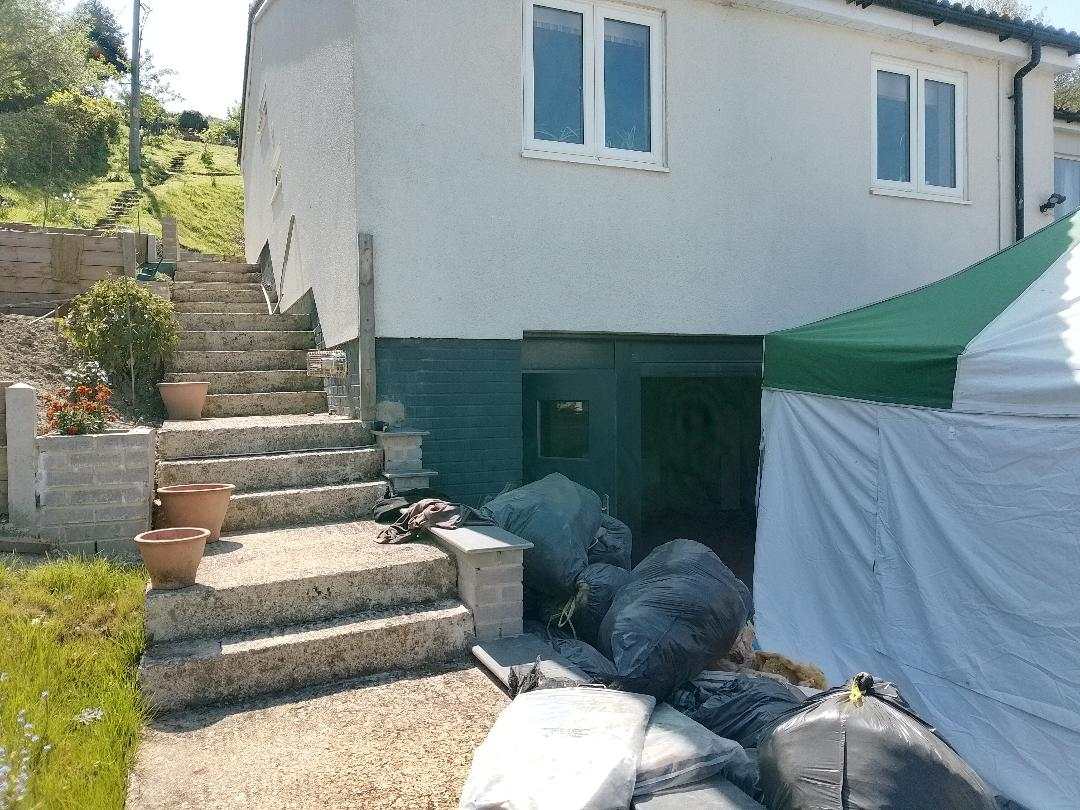 WiltshirePaul Posted 3 hours ago Posted 3 hours ago Hello all. first post for me as I've got issues at home and I'm overwhelmed.... Our house is from 1979/80, built into a greensand slope. The double garage sits under the front two bedrooms and bath/cloakroom. Those rooms are held up by three 6m spans of single and doubled up steels sitting in between 9inch cavity walls. We get a lot of water movement through the hill behind the house and although the garage walls get efflorescence it doesn't get wet. But there's corrosion to the ends of the steels that are underground. They were boxed in but I've cut all this off and removed fireboard, insulation and dead rats to mor or less start again. An old boy surveying engineer came round this week and said you need to stop the wet otherwise anything you do to the steels isn't going to work. His suggestion is to cut the steels and build block piers internally (if the concrete slab is thick enough (it isn't). I am getting views/price from the steel cutting firm and I need to do/arrange the slab to be cut and excavated so that 300mm of concrete can be laid as a pad for the blocks. Anyway, I just wanted to ask if there are other options open to me. I can't get to the outside side of the steels as there's a hill etc in the way - but I could cut and dig around the steels inside the garage to see what the damage is - is there any kind of treatment I can do around the steels in the wall itself to stop moisture getting to them? I should add that I intend to abrade the steels and prime/intumescent paint them afterwards as they were boxed in before. Thanks, Paul